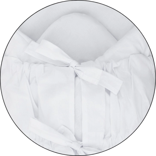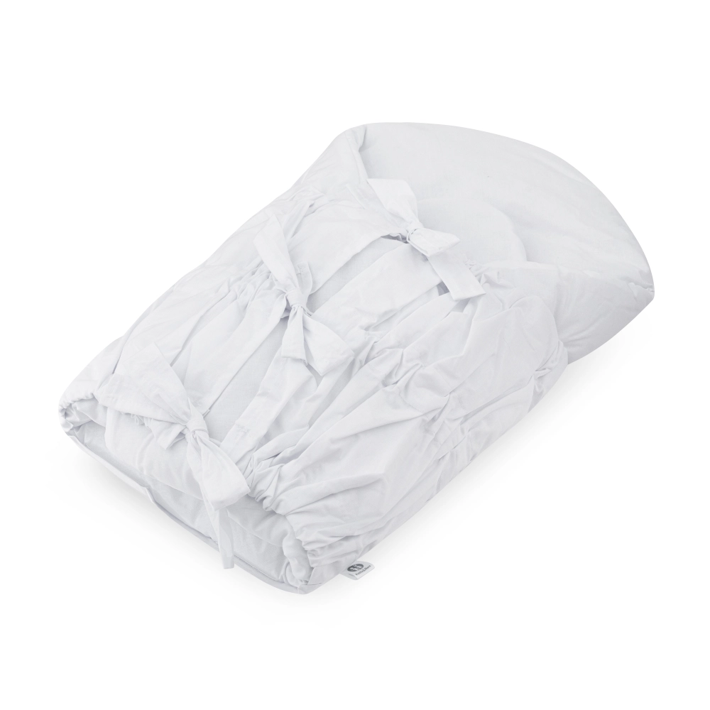 Create per il vostro bebè un ambiente sicuro e accogliente grazie al classico fasciatoio con lacci PETITE&MARS. L’inserto rigido in fibra di cocco, estraibile, stabilizza la posizione e previene l’inclinazione della testolina, mentre il rivestimento in 100% cotone garantisce morbidezza e traspirabilità. Ideale per lettino, passeggino e durante l’allattamento per un sonno tranquillo e di qualità del vostro neonato.