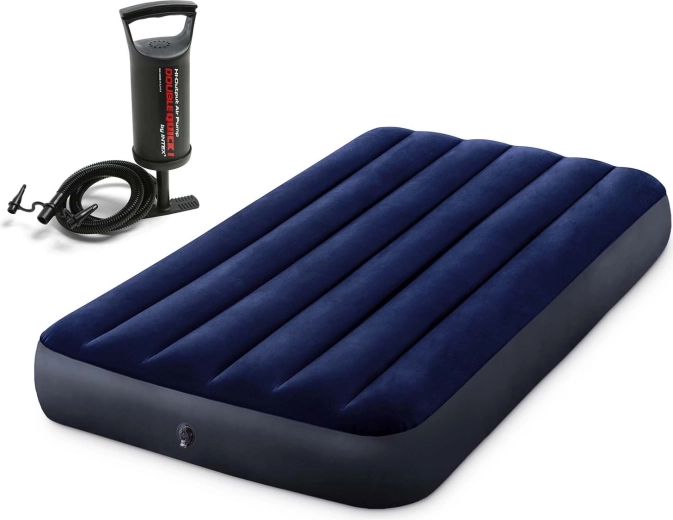 Materasso gonfiabile singolo INTEX con dimensioni 191 × 99 × 25 cm, incluso pompa a pistone manuale, offre gonfiaggio rapido, alto comfort e lunga durata grazie alle tecnologie Fiber‑Tech e Dura‑Beam. Ideale per campeggio, ospiti e soluzioni di sonno temporanee in casa, con superficie in velluto morbida e PVC resistente.