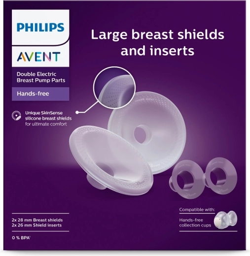 Grazie al design studiato con pochi componenti, pulizia e assemblaggio sono rapidi e intuitivi. Le diverse dimensioni dei componenti (paracapezzolo 28 mm e inserto 26 mm) offrono un adattamento più preciso per capezzoli e seni più grandi, aumentando comfort ed efficacia dell’estrazione. Utilizzare esclusivamente con le coppe di raccolta Philips AVENT in modalità hands-free.