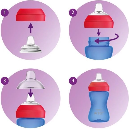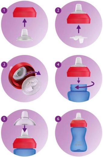 Il pratico coperchio igienico mantiene pulito il beccuccio a casa e fuori. Tutte le parti sono facili da smontare e lavabili in lavastoviglie. La tazza è realizzata in materiale sicuro senza BPA (0% BPA) ed è compatibile con i biberon Philips Avent Classic e Natural (esclusi quelli in vetro).