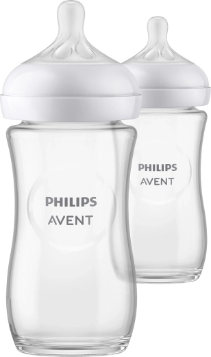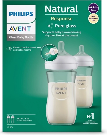 I biberon in vetro PHILIPS AVENT Natural Response (240 ml) supportano il ritmo naturale di suzione come al seno. La tettarella ampia e morbida a forma di seno rilascia il latte solo durante la suzione attiva, così puoi combinare facilmente allattamento e biberon. Inclusi valvola anticolica, protezione antigoccia, forma ergonomica e facile pulizia grazie al collo ampio. Senza BPA.