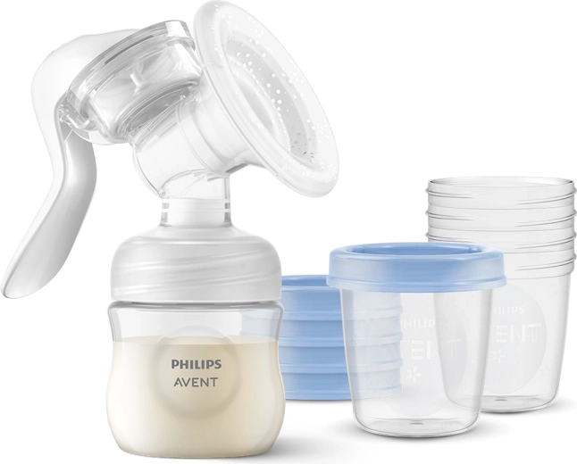 Il pratico tiralatte manuale PHILIPS AVENT con morbido inserto in silicone e tecnologia ispirata alla suzione del neonato offre un tiraggio delicato, silenzioso ed efficace in qualsiasi momento e luogo, senza elettricità né batterie. È possibile estrarre il latte direttamente nei contenitori o nei bicchieri VIA per un’alimentazione semplice e una conservazione sicura in frigorifero o nel congelatore. L’impugnatura ergonomica, la pulizia rapida e l’uso intuitivo rendono questo tiralatte una scelta apprezzata da mamme e professionisti.