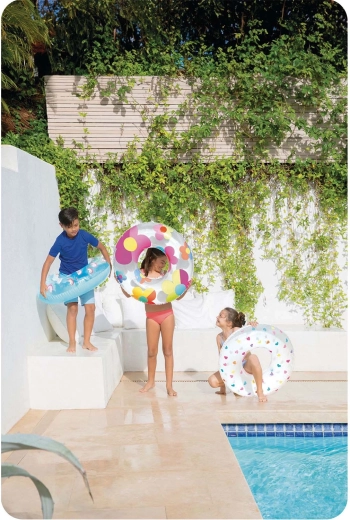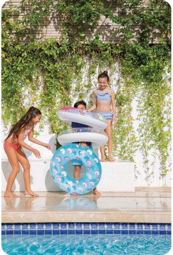 Il diametro di 81 cm e la portata fino a 40 kg garantiscono un sostegno stabile per bambini e preadolescenti: ideale per relax e giochi in acqua.