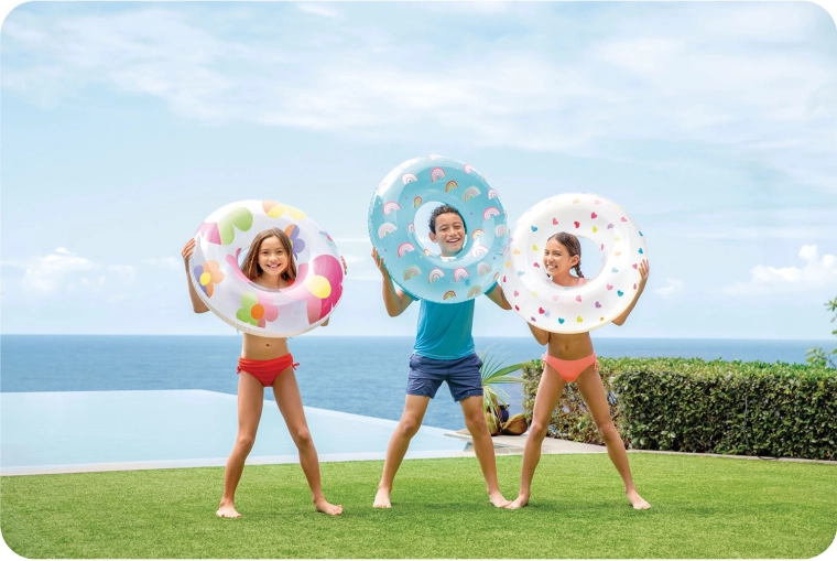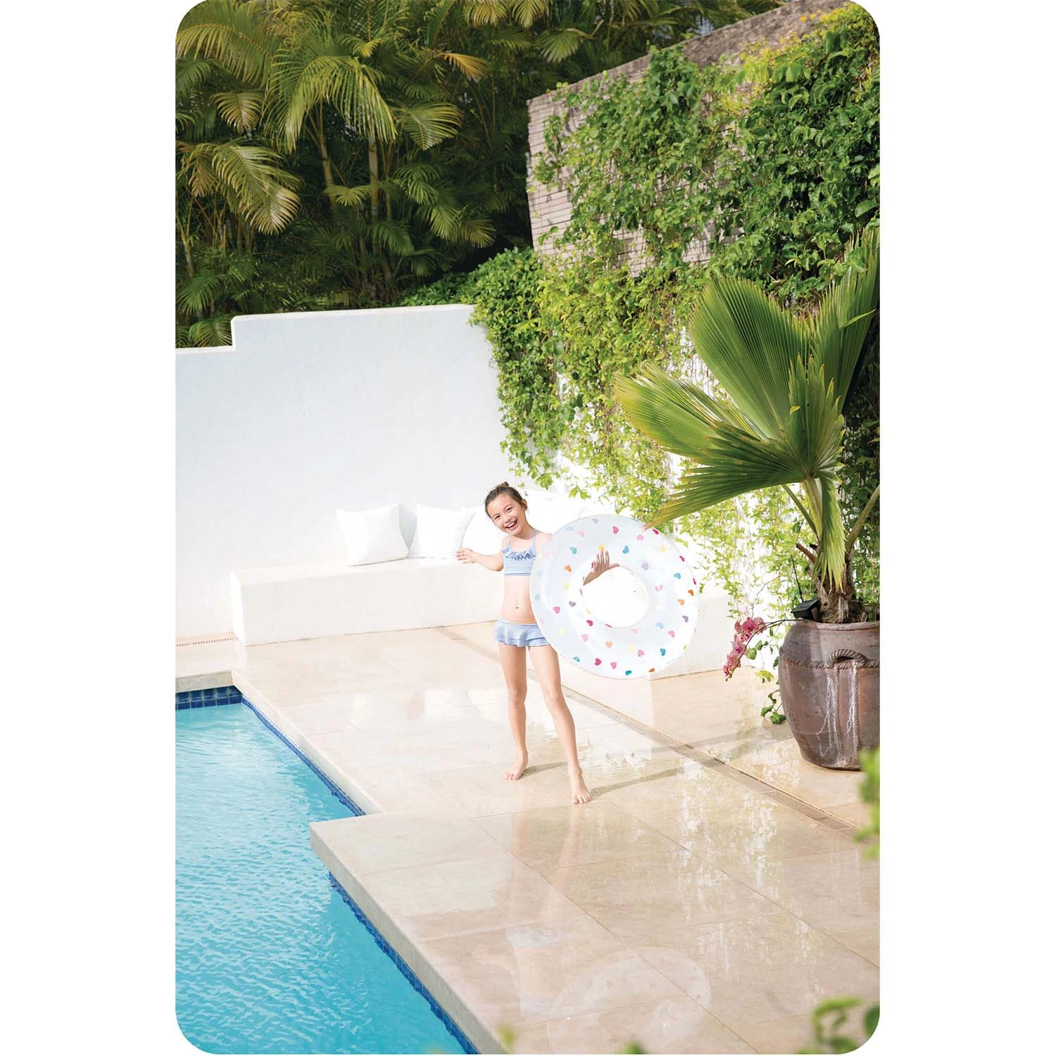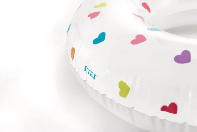 La ciambella gonfiabile da nuoto INtex con cuoricini è un’ottima scelta per divertirsi in acqua. La stampa colorata aumenta la visibilità e la superficie liscia e piacevole assicura comfort sia sdraiati che durante i giochi in piscina.