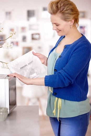 I sacchetti per sterilizzazione nel microonde PHILIPS AVENT sono una soluzione pratica quando serve disinfettare rapidamente e in modo affidabile biberon, tettarelle, parti del tiralatte e altri accessori. Ogni sacchetto va riempito con 60 ml d’acqua, si inseriscono i componenti puliti e, in 90 secondi nel microonde, si ottiene un’attrezzatura igienicamente pulita senza prodotti chimici.