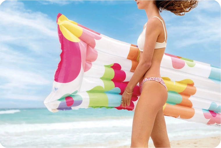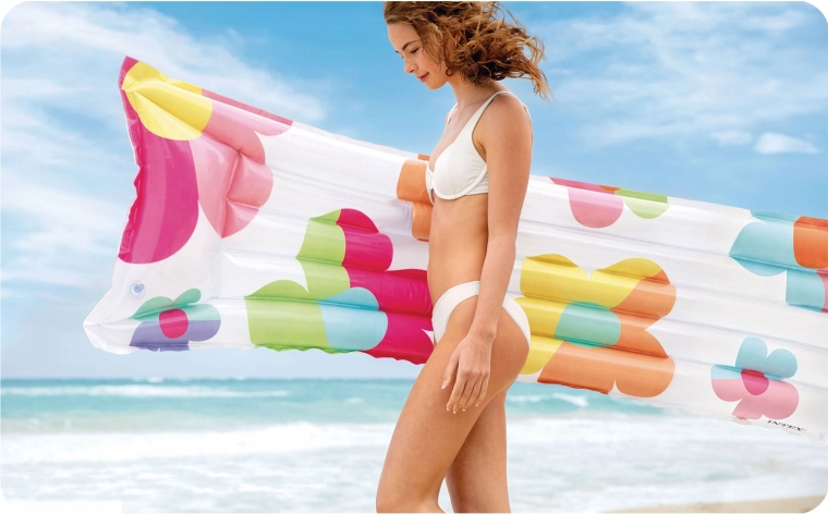 Il materassino gonfiabile INTEX con allegro motivo floreale è la scelta perfetta per rilassarsi sulla superficie dell’acqua. Grazie al cuscino integrato offre un piacevole supporto per la testa, mentre la struttura I-beam multicomparto assicura stabilità e comfort durante l’utilizzo.