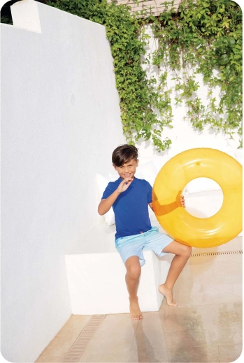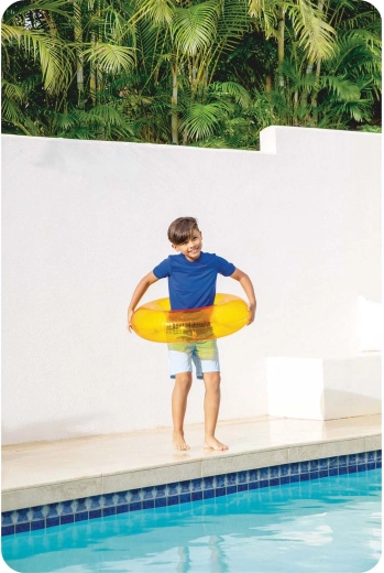 Il vivace colore arancione facilita il controllo dei bambini e aumenta la sicurezza in piscina e in acque aperte.