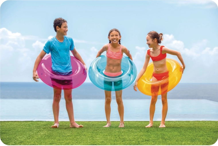 La ciambella è realizzata in PVC robusto ed elastico, che resiste meglio alle piccole abrasioni. Il vivace colore arancione aumenta la visibilità in acqua, contribuendo a un gioco più sicuro sia in piscina sia in acque libere.
