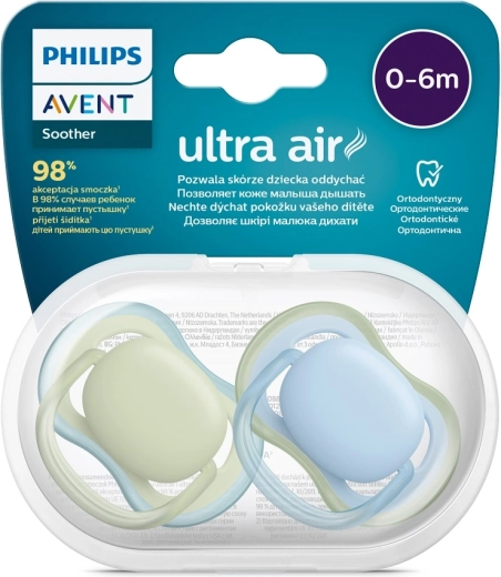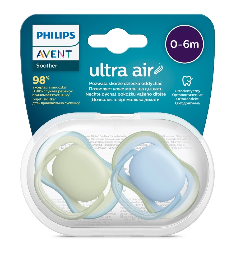 Philips Avent Ultra Air è progettato per un comfort delicato e una pelle del bambino più sana. I fori extra grandi nello scudo garantiscono una maggiore circolazione dell’aria, mantenendo la pelle intorno alla bocca più asciutta e meno irritata. La struttura leggera e l’anello ergonomico ne facilitano la presa e il fissaggio.