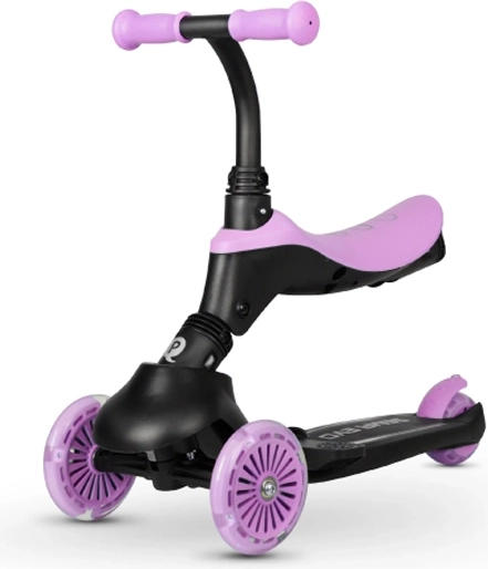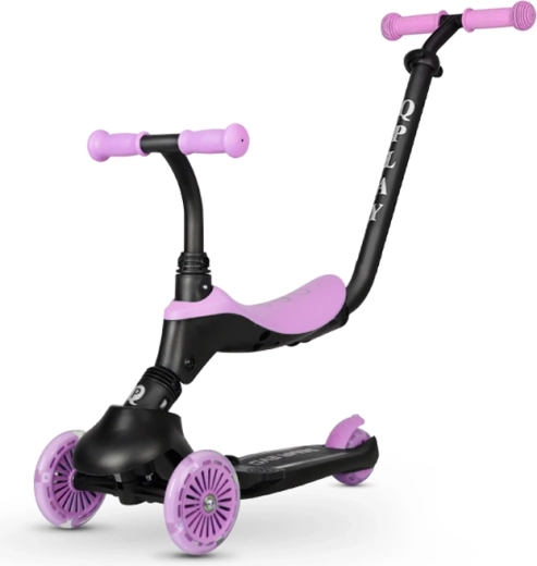 Il monopattino e balance bike per bambini Qplay Sema Evo 3in1 cresce con il tuo bambino da 12 mesi fino a 50 kg. Offre un telaio stabile a tre ruote, ruote anteriori con luci LED, sedile rimovibile e manico genitoriale regolabile in altezza per una guida sicura. Grazie al meccanismo di spinta e sterzo, al sistema pieghevole e al freno posteriore è ideale per imparare l’equilibrio e per la guida autonoma.