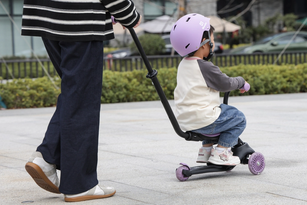 Il sedile rimovibile e il manico per genitori permettono di passare rapidamente dalla guida da seduti al monopattino autonomo, che favorisce equilibrio e coordinazione.