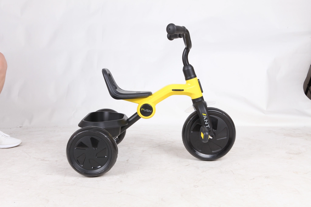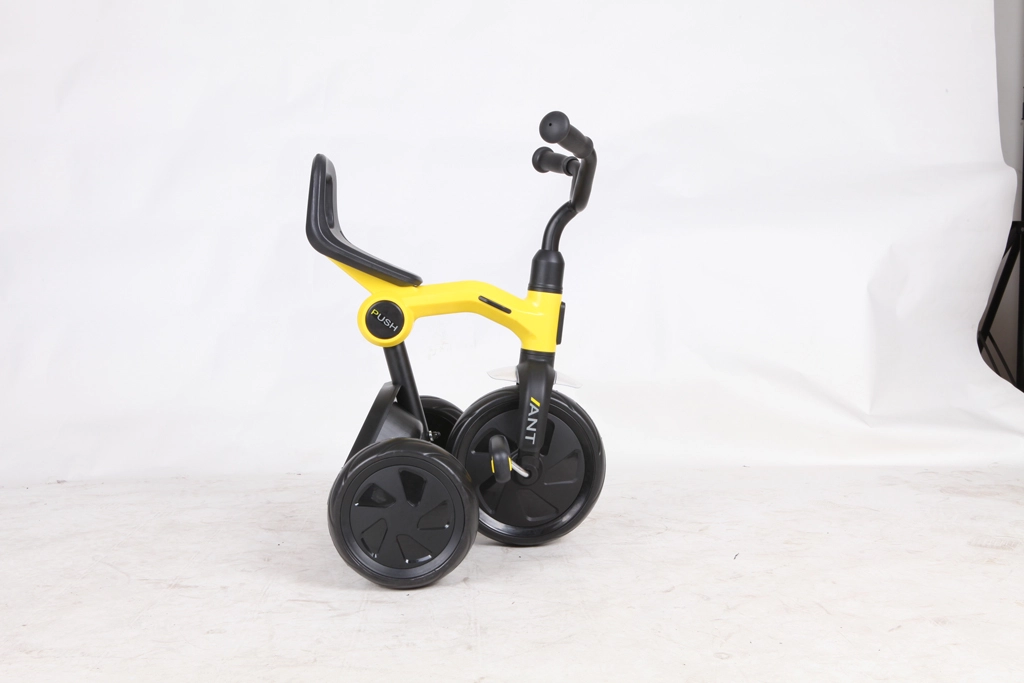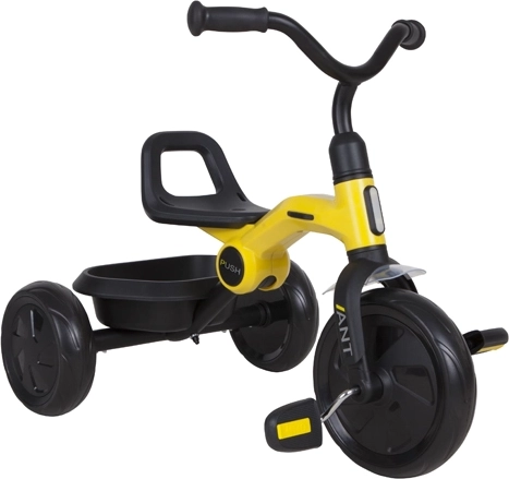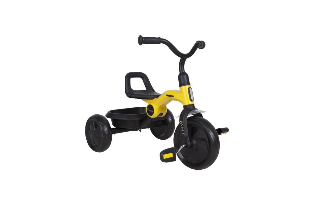 Il triciclo Qplay Ant, leggero e resistente, in elegante colore giallo è ideale per bambini da 2 a 6 anni. Offre una robusta struttura in metallo, sedile regolabile che cresce con il bambino, ruote EVA esenti da manutenzione resistenti alle forature e un design pieghevole compatto con maniglia per un facile trasporto. La sicurezza è garantita da una cintura di sicurezza e il pratico cestino posteriore contiene i giocattoli per il viaggio.