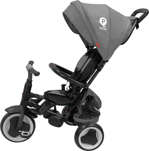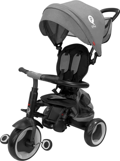 Qplay Rito EVA Plus è un triciclo studiato per adattarsi con facilità all’età e alle capacità del bambino. Nella fase iniziale lo guidi tu grazie alla guida parentale, in seguito il piccolo pilota può prendere il controllo grazie al blocco dello sterzo e alla funzione ruota libera. L’imbottitura traspirante, lo schienale reclinabile e il poggiapiedi ribaltabile e aggiuntivo garantiscono comfort anche durante le uscite più lunghe.