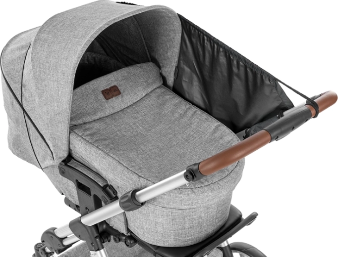 Il parasole si tira facilmente sopra la cappottina o si fissa al lato della navicella: in questo modo garantisce ampia ombreggiatura a mezzogiorno e copertura laterale al mattino e alla sera.