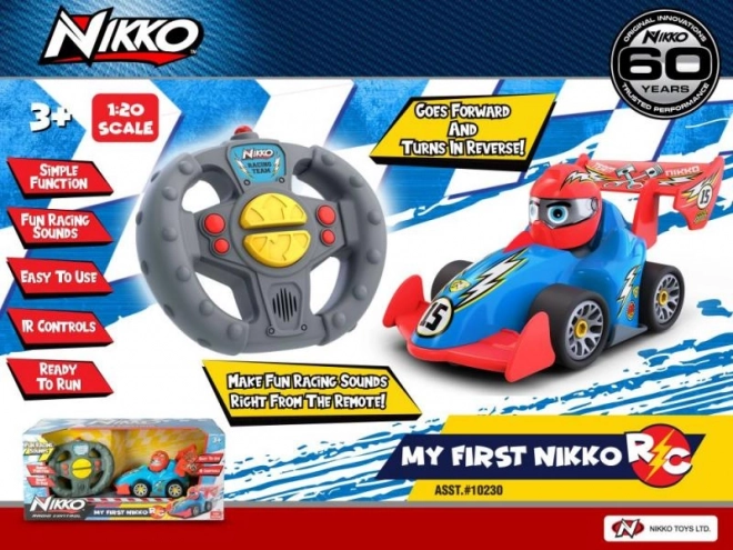 Presenta ai piccoli piloti la loro prima macchinina radiocomandata My First Nikko. Il semplice telecomando permette di partire subito in pista, fare retromarcia e riprodurre divertenti suoni da gara e beep. Bordi morbidi e alta qualità costruttiva garantiscono un gioco sicuro, batterie incluse e il giocattolo è adatto dai 2 anni in su.