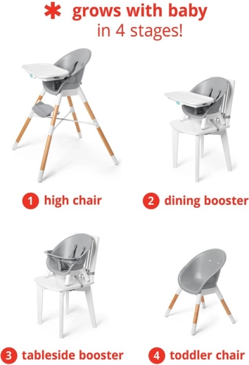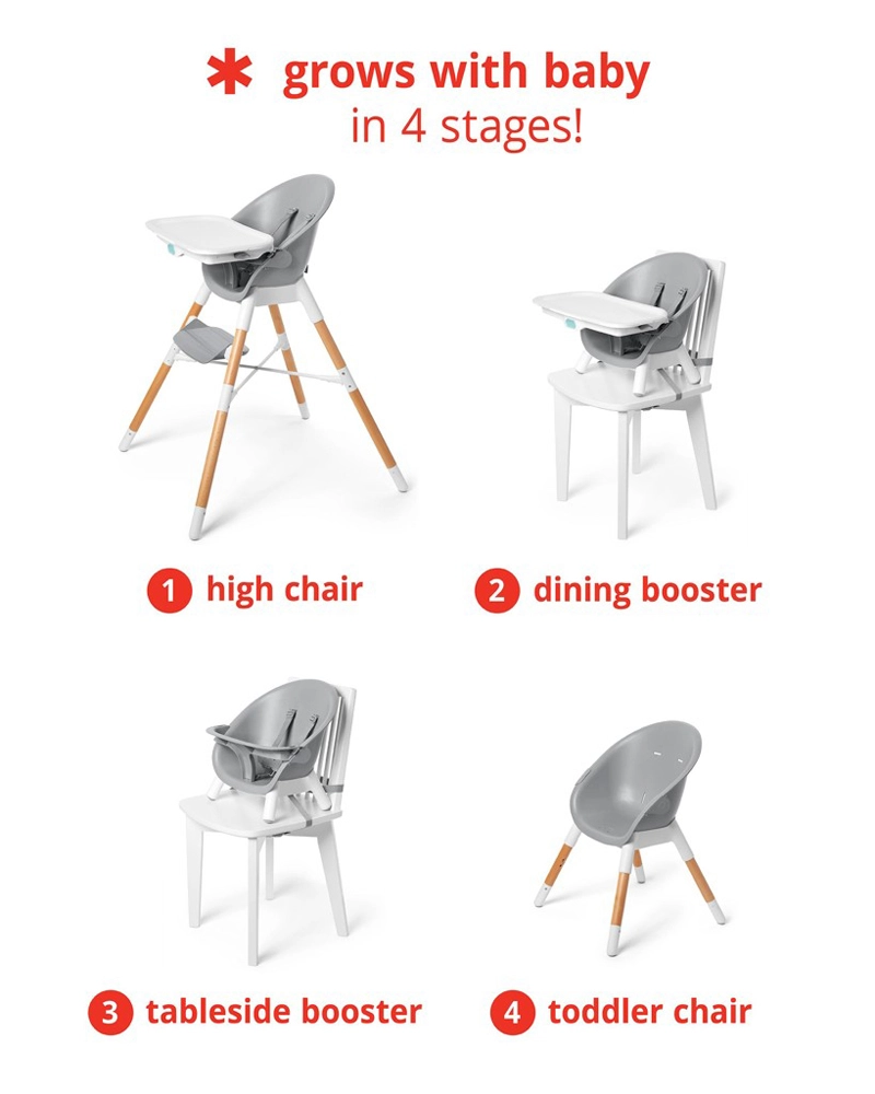 - 4in1 utilizzo: seggiolone con vassoio, seggiolone senza vassoio, sedia alta da tavolo, poltroncina/sediolina per bambini