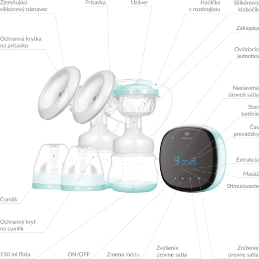 Il controllo è semplice grazie al display LED con pulsanti touch e al pratico timer. Scegli tra 3 modalità – stimolazione, massaggio ed estrazione – e tra 9 livelli di intensità per il massimo comfort. La struttura leggera, le dimensioni compatte e la batteria con autonomia fino a 150 minuti rendono questo tiralatte l’aiutante ideale a casa e in viaggio. I morbidi cuscinetti in silicone con bordo flessibile e i materiali senza BPA garantiscono sicurezza per te e il tuo bambino.