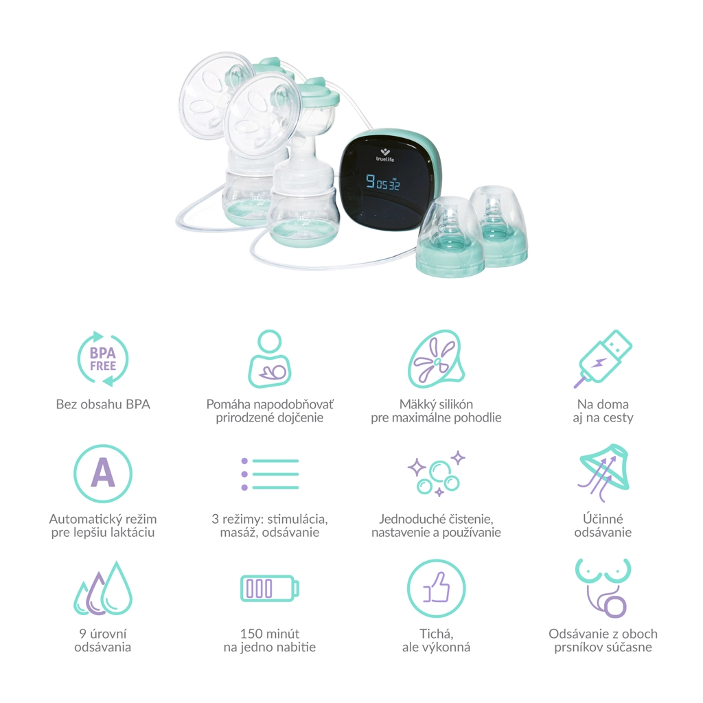 TrueLife Nutrio BP è un affidabile tiralatte elettrico doppio progettato per le mamme che desiderano risparmiare tempo e massimizzare il comfort. L’estrazione simultanea da entrambi i seni supporta la lattazione, fa risparmiare tempo e consente di avere latte pronto per dopo – in frigorifero dura fino a 48 ore. La tecnologia MilkFlowStimulation® favorisce una delicata stimolazione del flusso del latte ed è adatta anche in caso di difficoltà con l’allattamento.