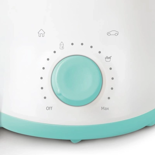 Il dispositivo è progettato per un’utilizzo semplice e intuitivo: puoi selezionare la temperatura esatta con la manopola oppure usare i programmi preimpostati (40 °C per i biberon, 70 °C per le pappe). Al raggiungimento della temperatura, lo scaldabiberon si spegne automaticamente. In dotazione un cestello/inserti di sicurezza per una gestione agevole del biberon caldo e un adattatore per auto per un riscaldamento senza pensieri in viaggio.