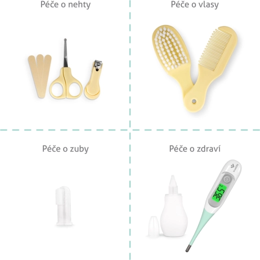 TRUELIFE BabyKit è un set ben studiato che copre le esigenze quotidiane del bebè fin dai primi giorni. Il termometro digitale TrueLife Care T3 misura la temperatura in soli 5–10 secondi, ha un display retroilluminato a 3 colori per un rapido orientamento e una punta flessibile delicata sulla pelle sensibile. L’aspiratore nasale aiuta a liberare le vie respiratorie, mentre forbicine e tronchesine con punte arrotondate di sicurezza facilitano la cura delle unghie. Il pennello morbido e il pettine sono ideali per i primi capelli.