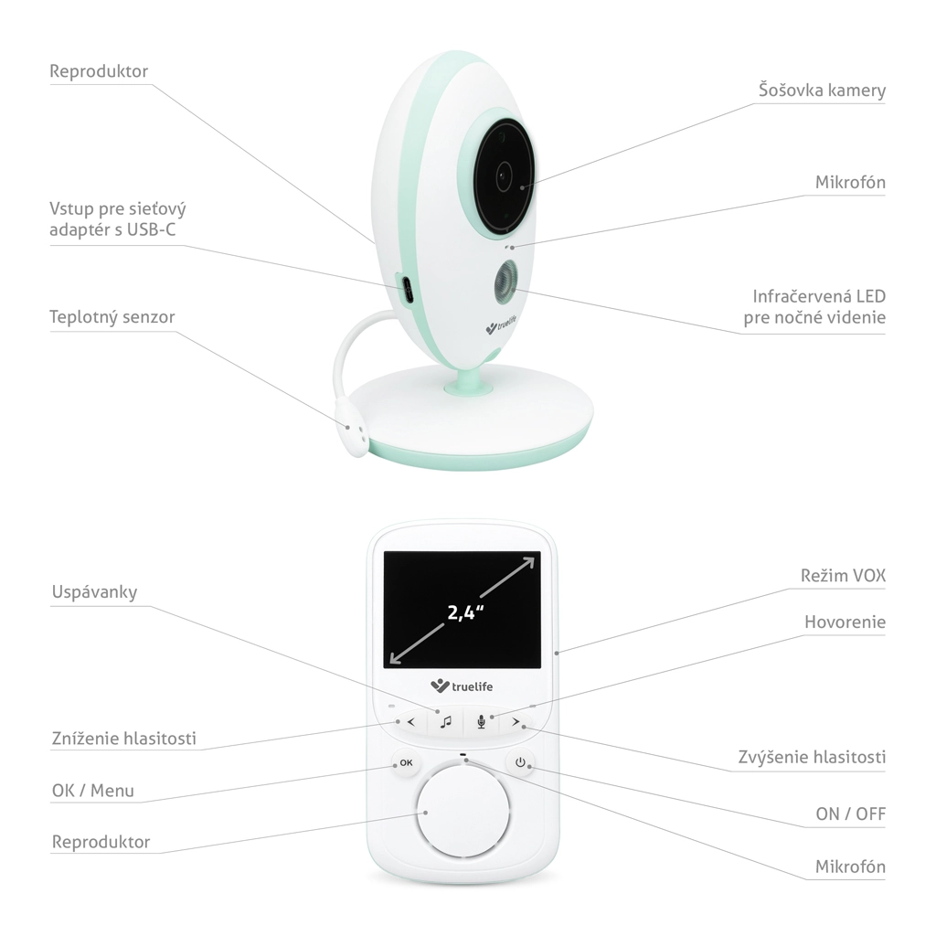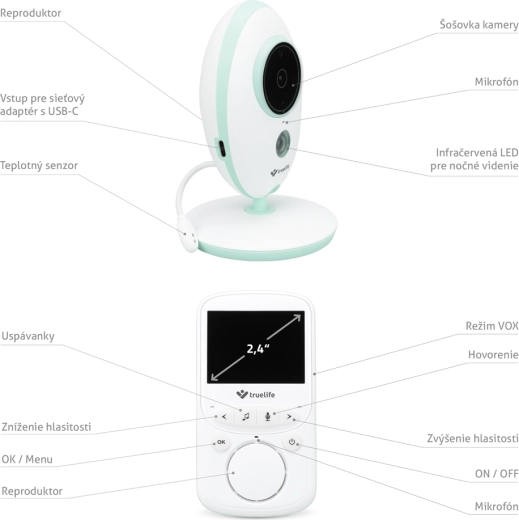 Il baby monitor video digitale TRUELIFE NannyCam V24 Pro offre immagini nitide di giorno e di notte, un display LCD a colori da 2,4", trasmissione stabile a 2,4 GHz fino a 300 m e comunicazione bidirezionale. Grazie alla modalità VOX, l’unità genitore dura fino a 24 ore con batteria. Non mancano visione notturna, misurazione della temperatura ambiente, ninne nanne e la moderna ricarica USB‑C con supporto power bank.