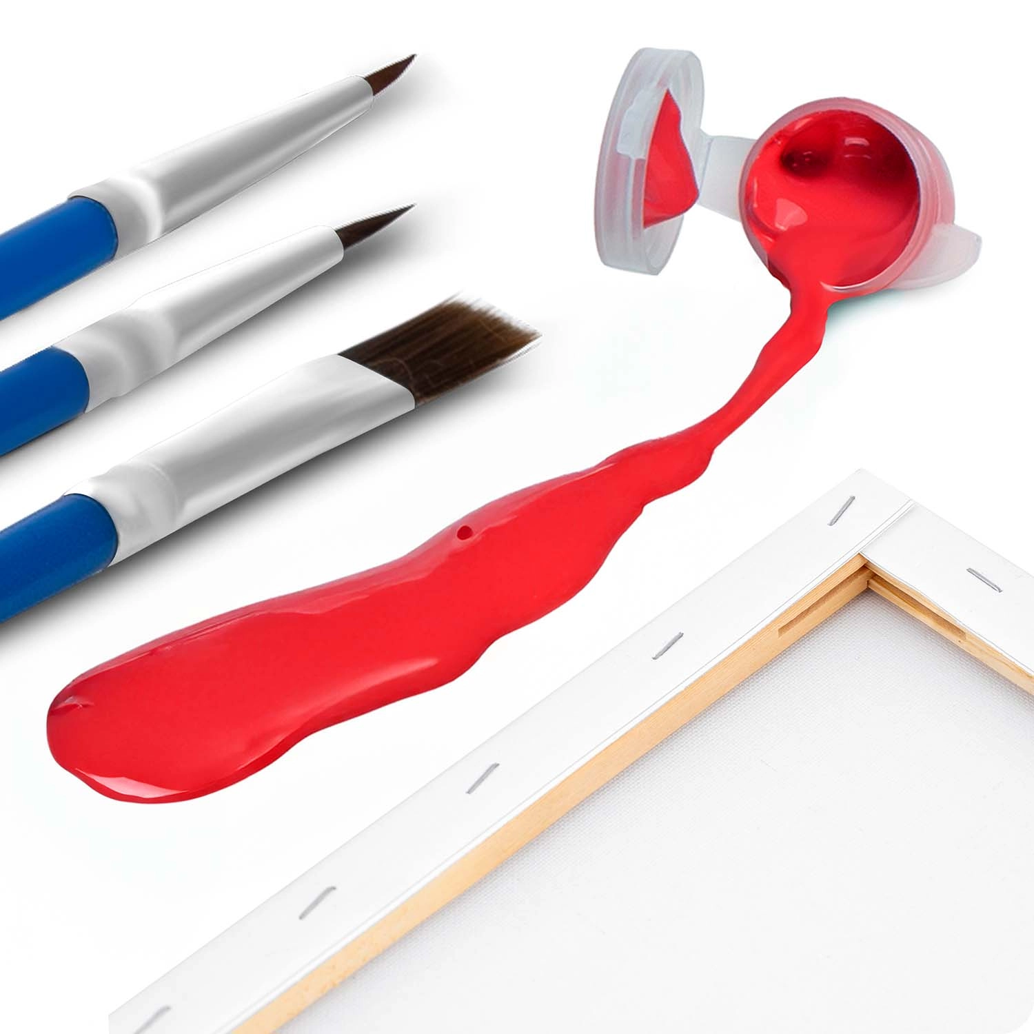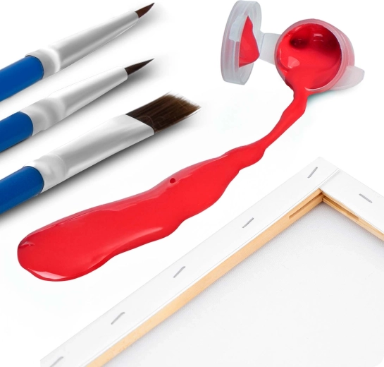 Set completo per dipingere subito: tela preparata su telaio, fino a 30 colori acrilici intensi, 3 pennelli di diverse dimensioni e ferramenta per appenderlo.