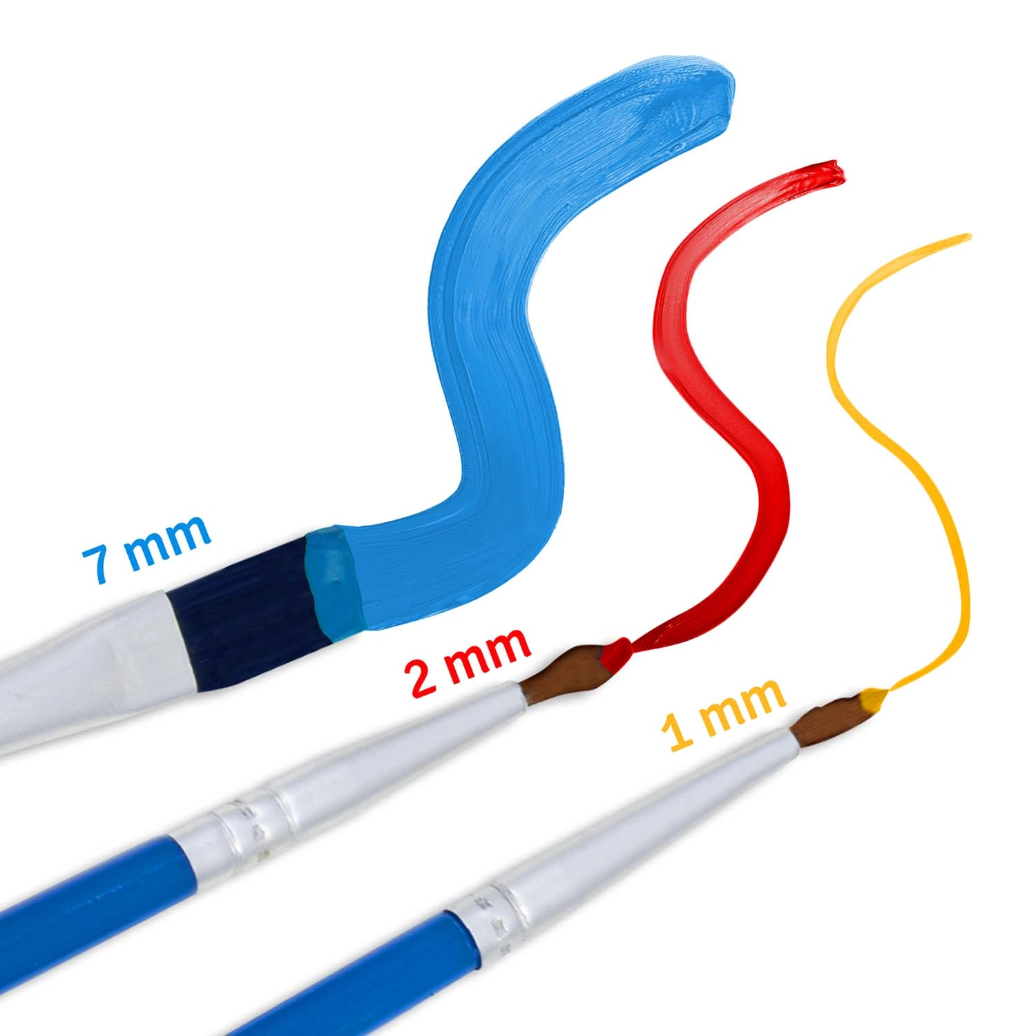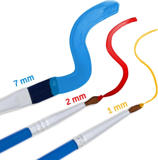 Tre pennelli (1 mm, 2 mm e 7 mm) coprono sia le grandi superfici sia i dettagli più minuti. Colori densi e coprenti garantiscono una piena copertura senza che le linee traspaiano.