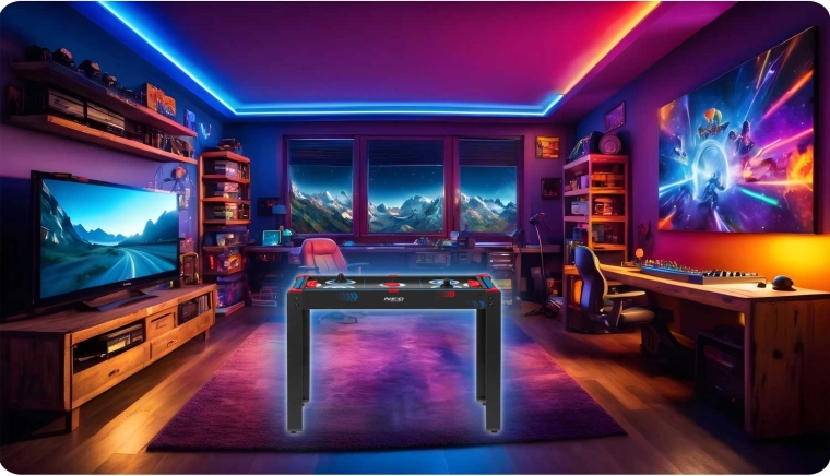 Alterna biliardo, air hockey, ping pong, basket con canestro a ritorno e tiro con l’arco in pochi secondi. Ideale per il divertimento domestico e i tornei in famiglia.