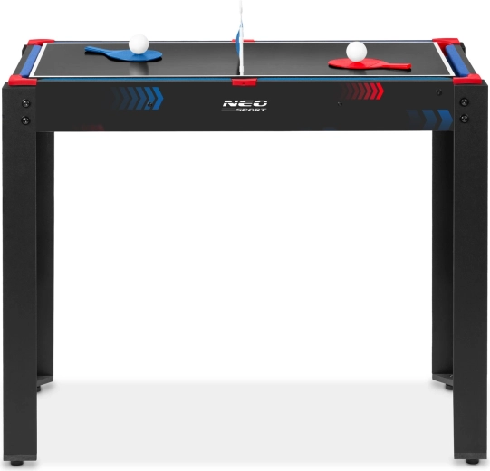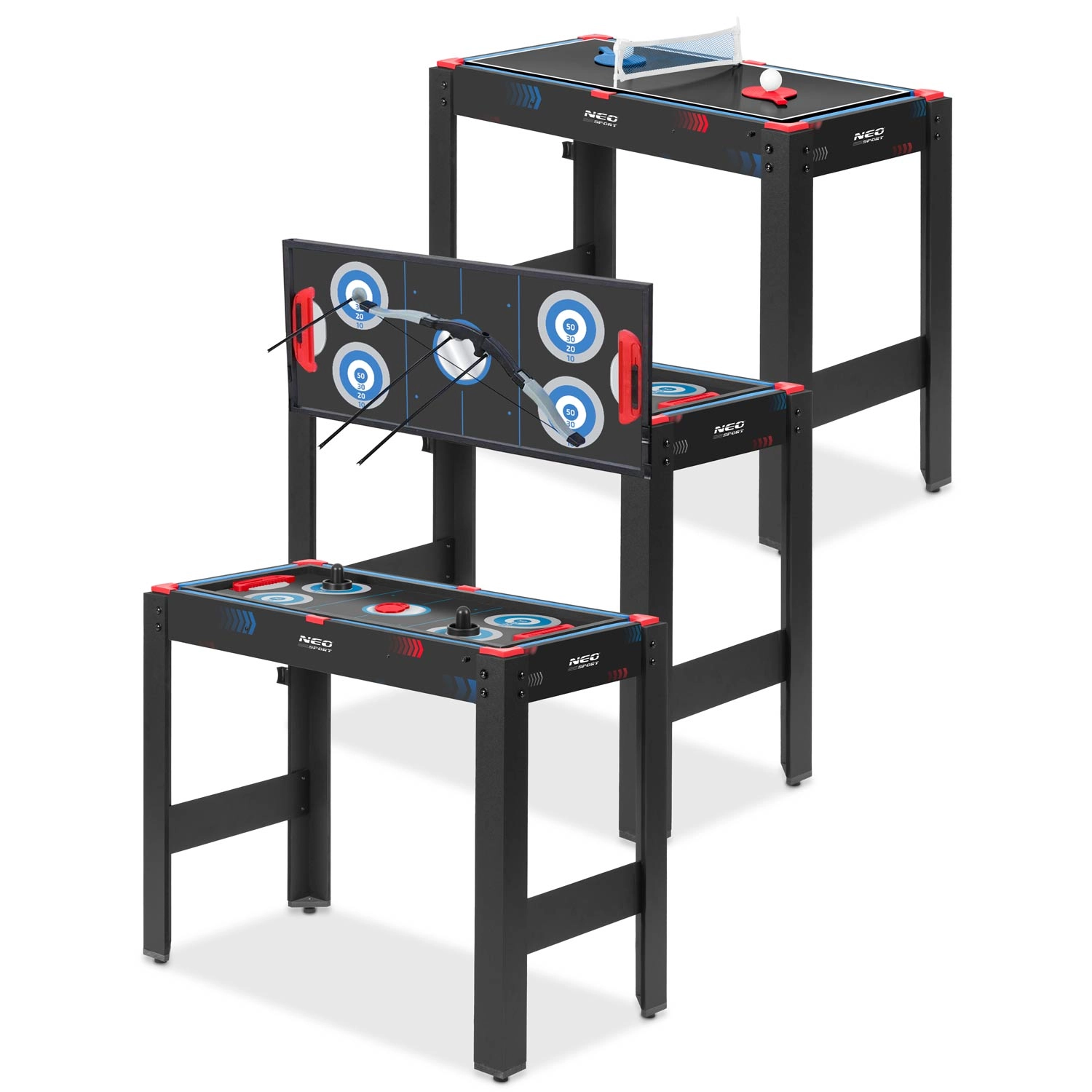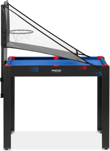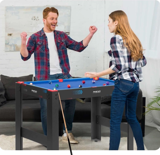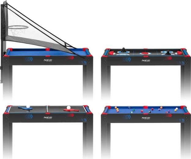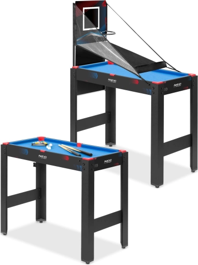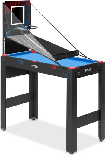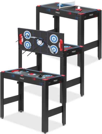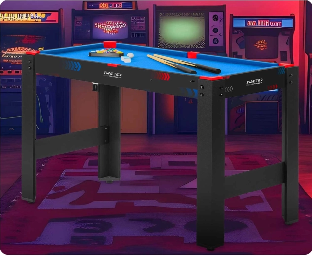 Il tavolo da gioco 5 in 1 NEO SPORT è la soluzione ideale per camerette, sale giochi e soggiorni. Grazie alla base solida e ai piani intercambiabili progettati con cura, puoi passare in un attimo tra i giochi preferiti. Le dimensioni compatte fanno risparmiare spazio: base con gambe, piano bifacciale e tavolo da biliardo si assemblano in un unico insieme.