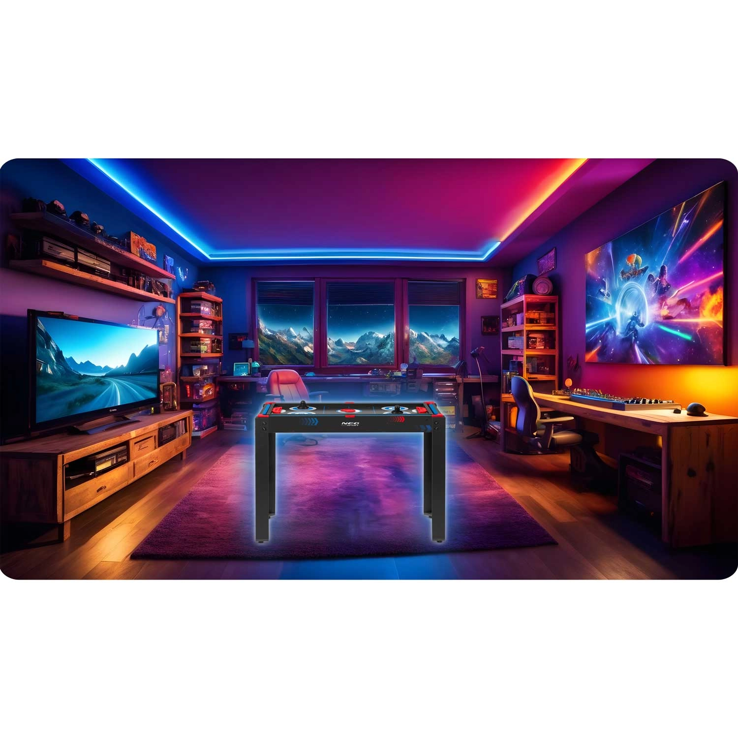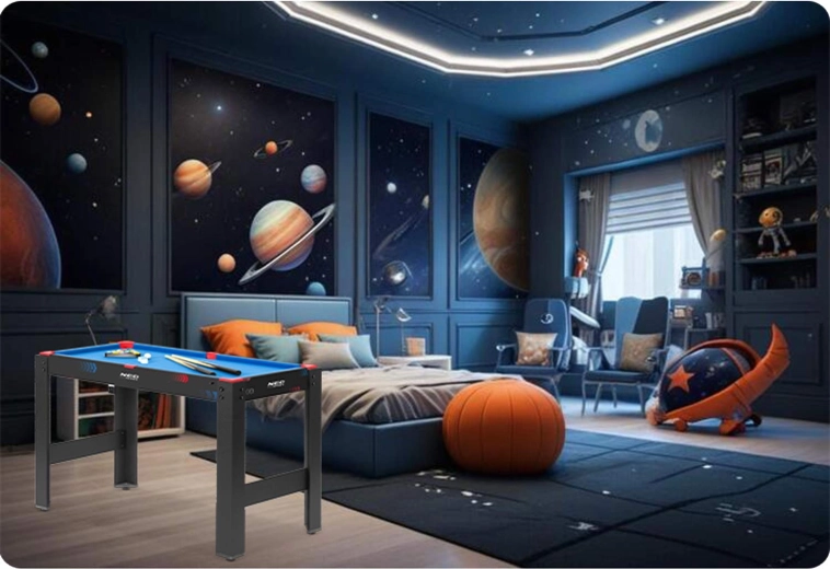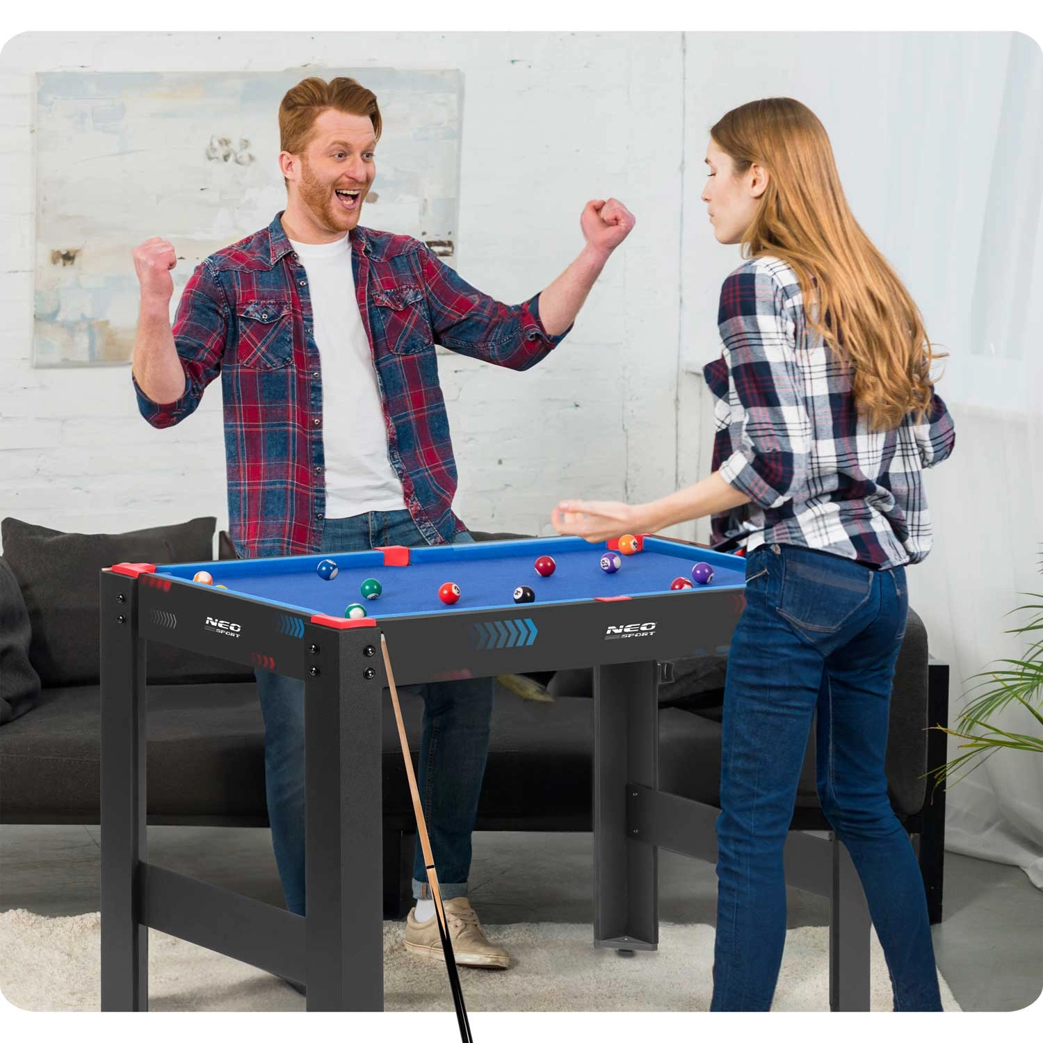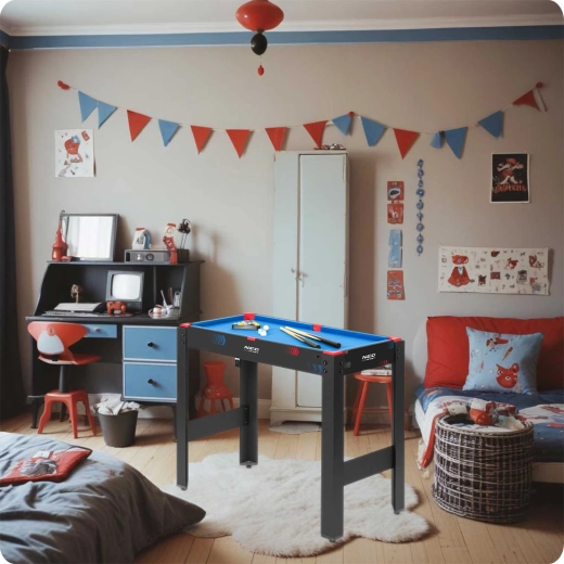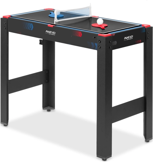 Il tavolo da gioco 5 in 1 NEO SPORT è la soluzione ideale per camerette, sale giochi e soggiorni. Grazie alla base solida e ai piani intercambiabili progettati con cura, puoi passare in un attimo tra i giochi preferiti. Le dimensioni compatte fanno risparmiare spazio: base con gambe, piano bifacciale e tavolo da biliardo si assemblano in un unico insieme.