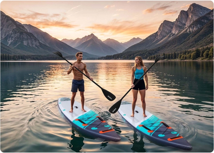 PVC a triplo strato, cuciture rinforzate e rinforzo del bordo garantiscono rigidità, resistenza e lunga durata. Il tappetino EVA antiscivolo è confortevole e resistente ai raggi UV.