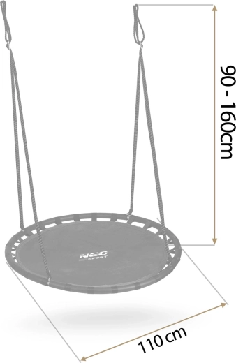 L’altalena circolare NEO-SPORT Swingo 110 cm è un’ottima scelta per il divertimento e il relax quotidiani all’aperto. L’ampia seduta in resistente tessuto Oxford 600D è impermeabile e facile da pulire, così da affrontare senza problemi pioggia e uso intenso. La solida struttura in acciaio con guaina in schiuma PE aumenta sicurezza e comfort durante il dondolio.