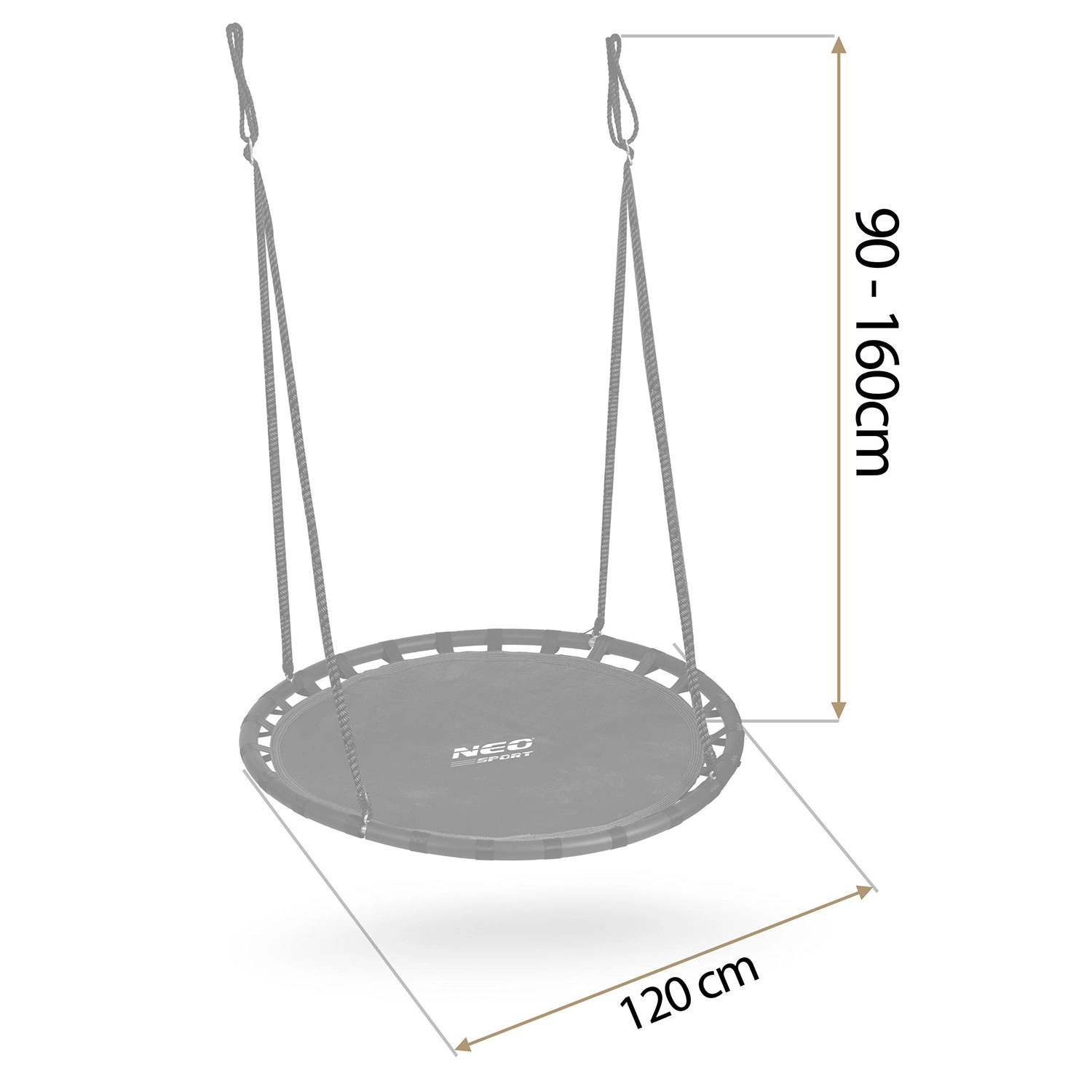 Goditi ore di divertimento e relax con l’altalena rotonda a nido dal diametro di 120 cm di NEO-SPORT. Offre seduta spaziosa e confortevole, materiale impermeabile Oxford 600D, robusto telaio in acciaio con imbottitura in schiuma e corde robuste e regolabili per un dondolio sicuro e stabile in casa e in giardino.