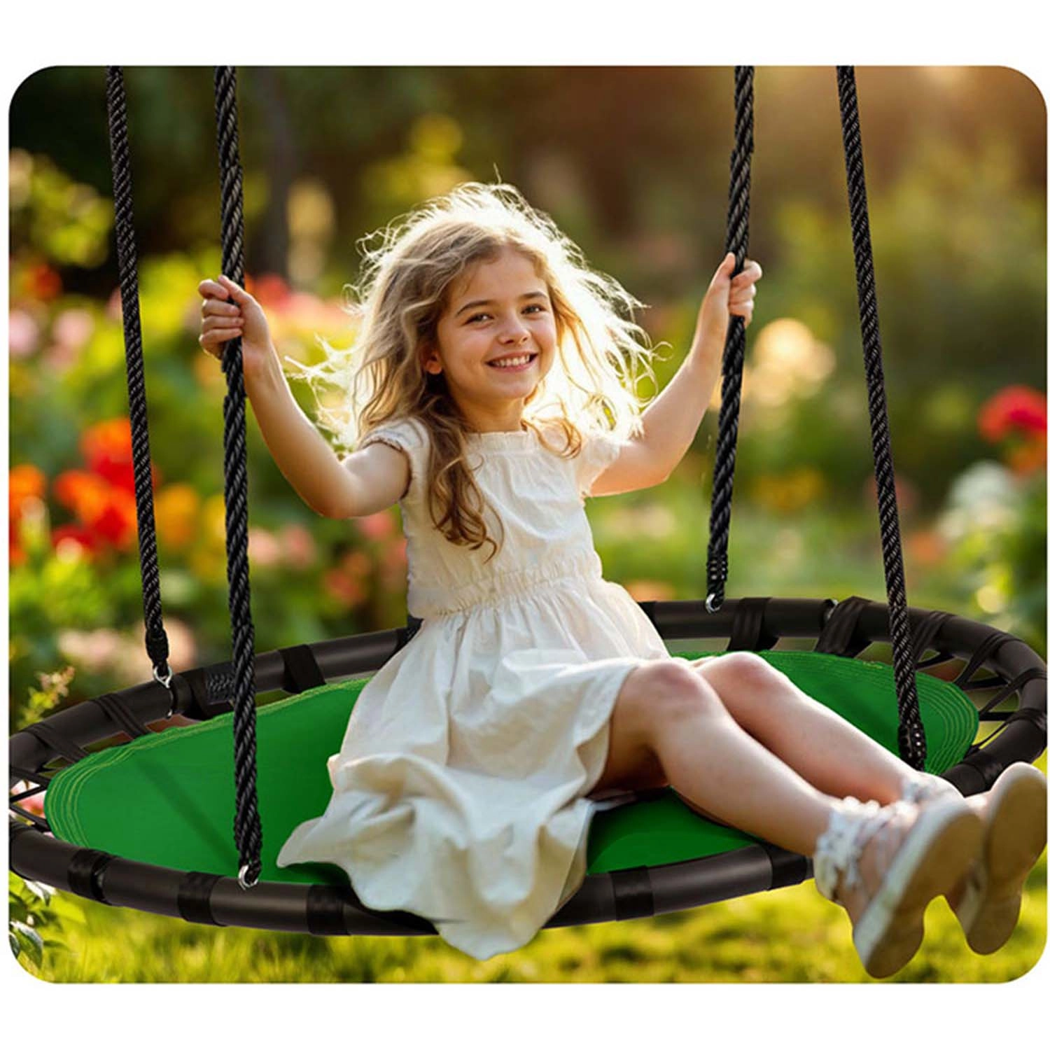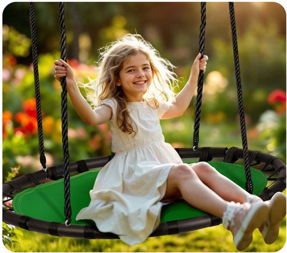 L’altalena NEO-SPORT Swingo 120 cm è una scelta eccellente per giardino, cortile e parco giochi. L’ampia seduta rotonda in resistente Oxford 600D è impermeabile e di facile manutenzione. Il robusto telaio in acciaio con morbido rivestimento in schiuma aumenta comfort e sicurezza durante l’oscillazione. La portata fino a 150 kg garantisce divertimento condiviso per bambini piccoli e grandi – e anche gli adulti possono rilassarsi.