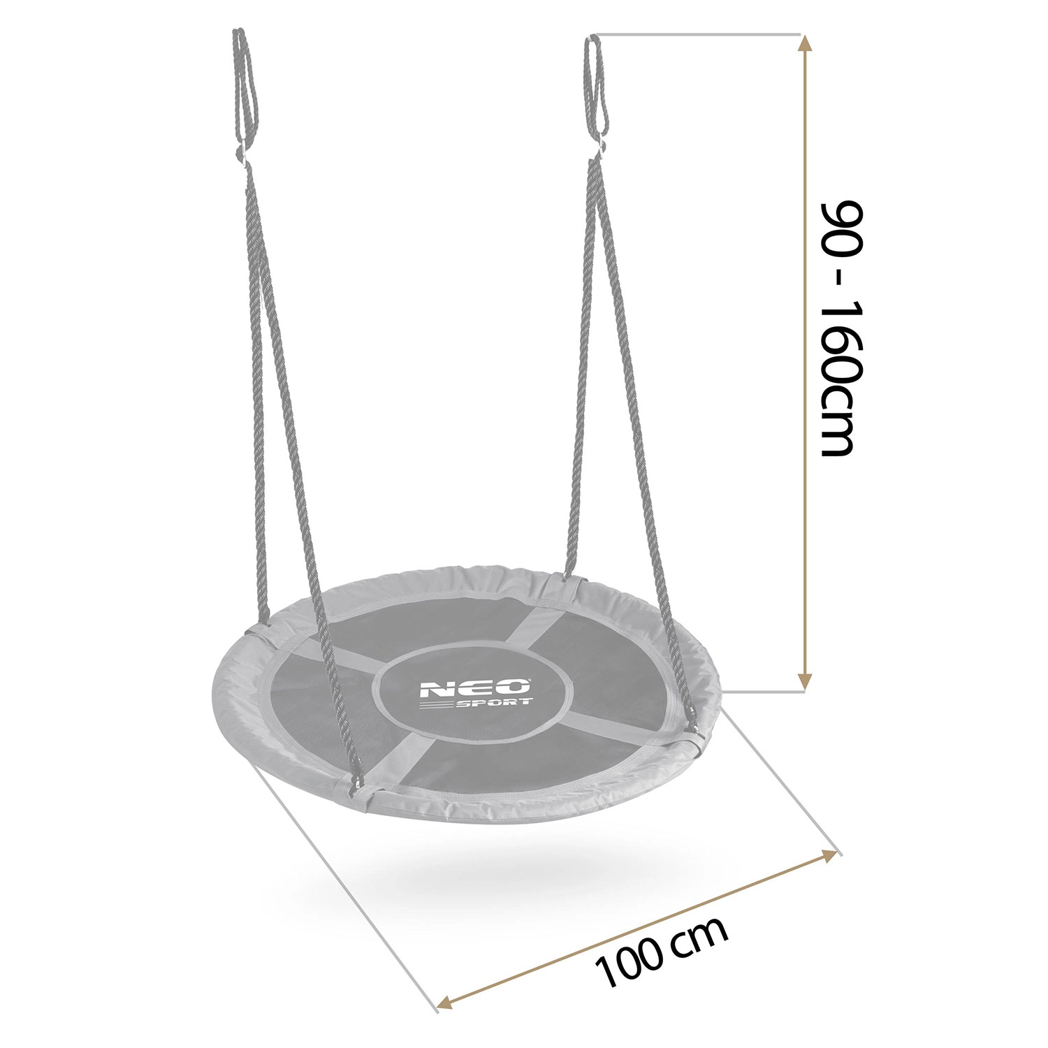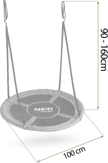 L’altalena circolare NEO-SPORT Swingo 100 cm è un’ottima scelta per giardino, terrazza e area giochi. Il robusto telaio in acciaio rivestito con morbida schiuma protegge durante il dondolio, mentre il sedile resistente in materiale Oxford 600D è impermeabile e facile da lavare. Grazie all’elevata portata è adatta a bambini piccoli e grandi – e permette anche di dondolare insieme.