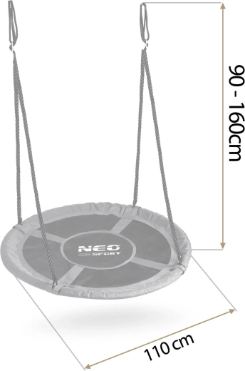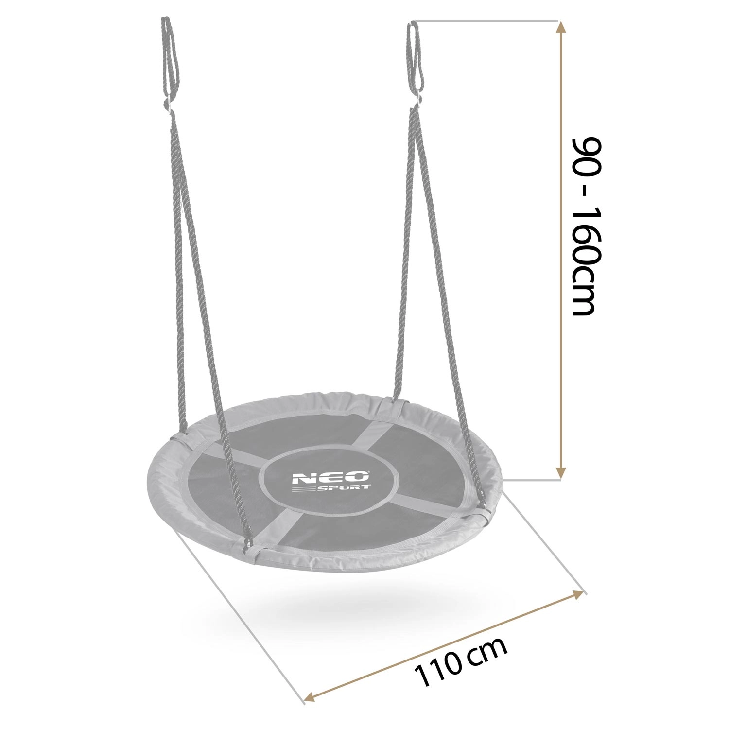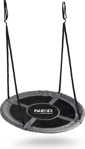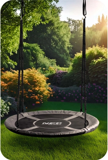 L’altalena a nido NEO-SPORT Swingo 110 cm è ideale per giardino e cortile. L’ampia e confortevole seduta in resistente tessuto impermeabile Oxford 600D è facile da pulire e piacevole al tatto. La struttura in acciaio rivestita con morbida schiuma PE e le robuste corde intrecciate offrono stabilità e sicurezza per bambini e adulti.