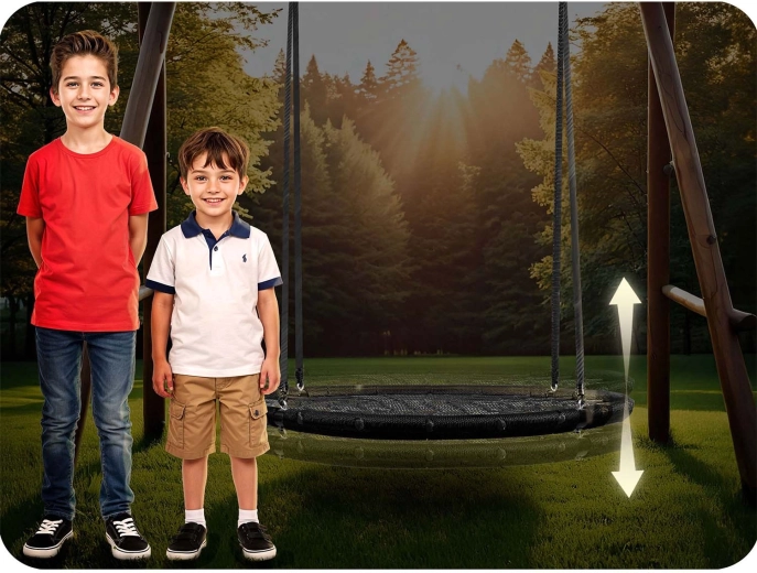Grazie alla regolazione fluida dell’altezza nell’intervallo di circa 90–160 cm, puoi adattare facilmente il fissaggio all’età e all’altezza del bambino. L’ampio nido e la rete robusta garantiscono ottima stabilità e comfort – per dondolarsi sia da seduti che sdraiati.