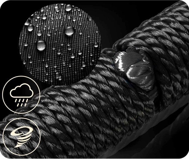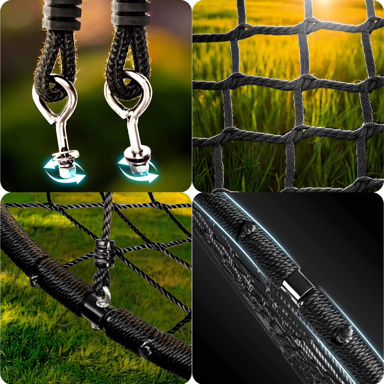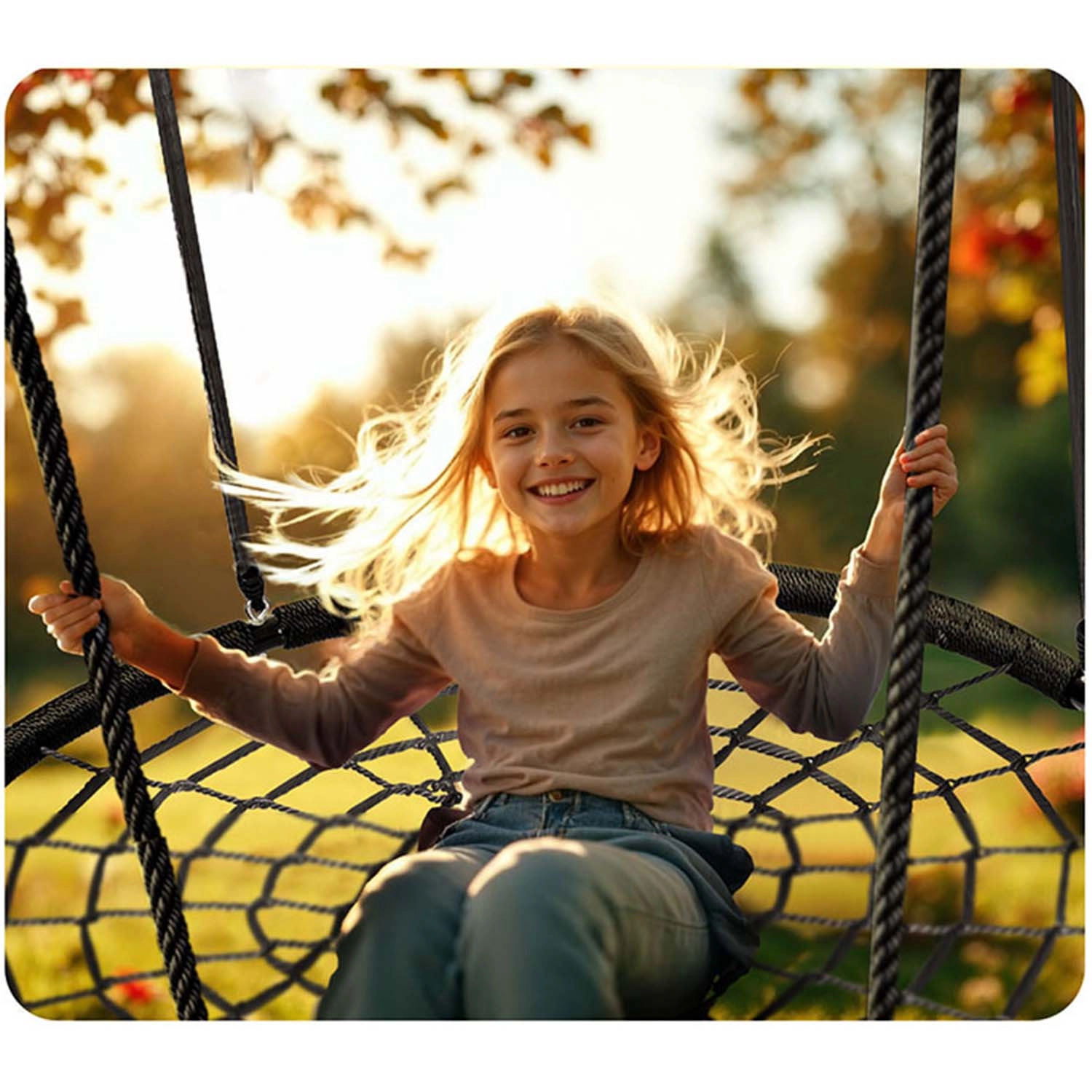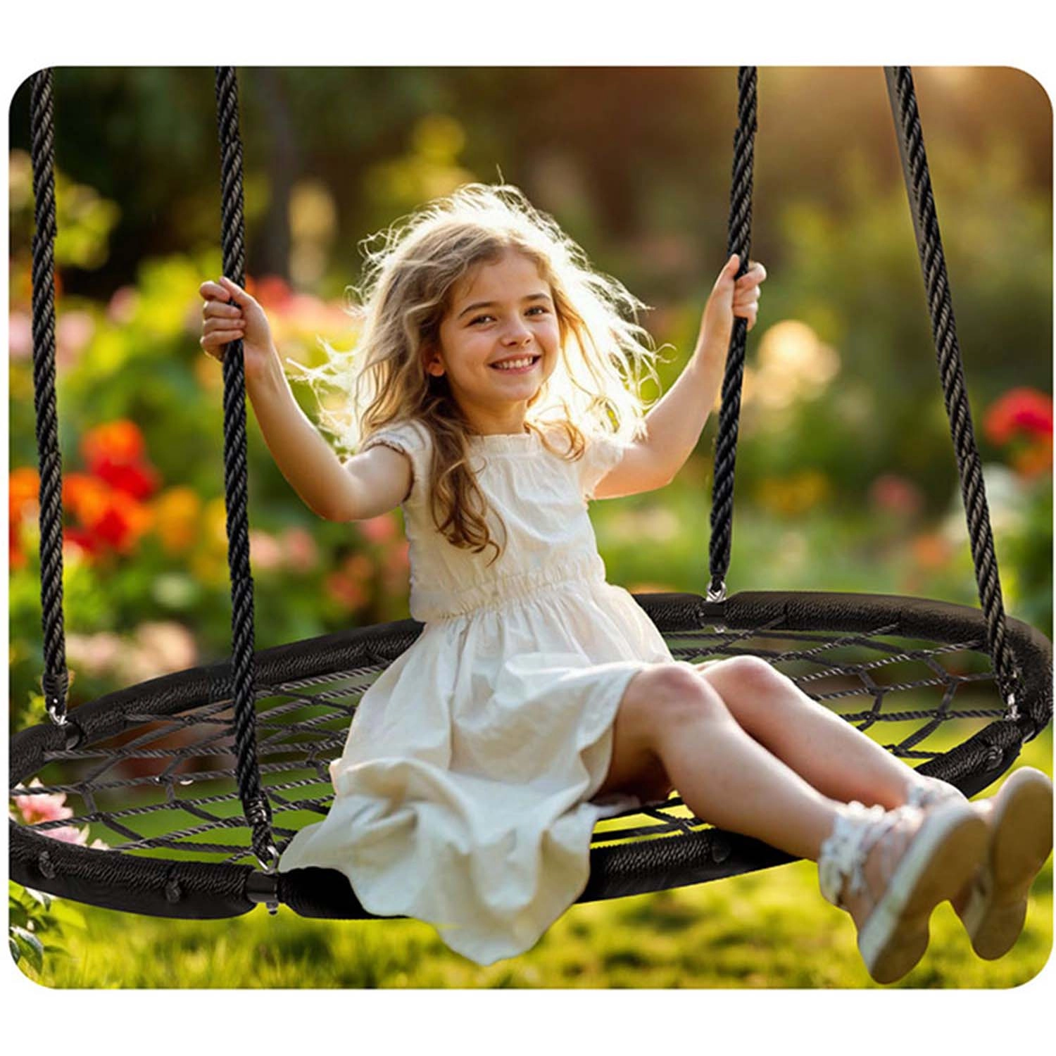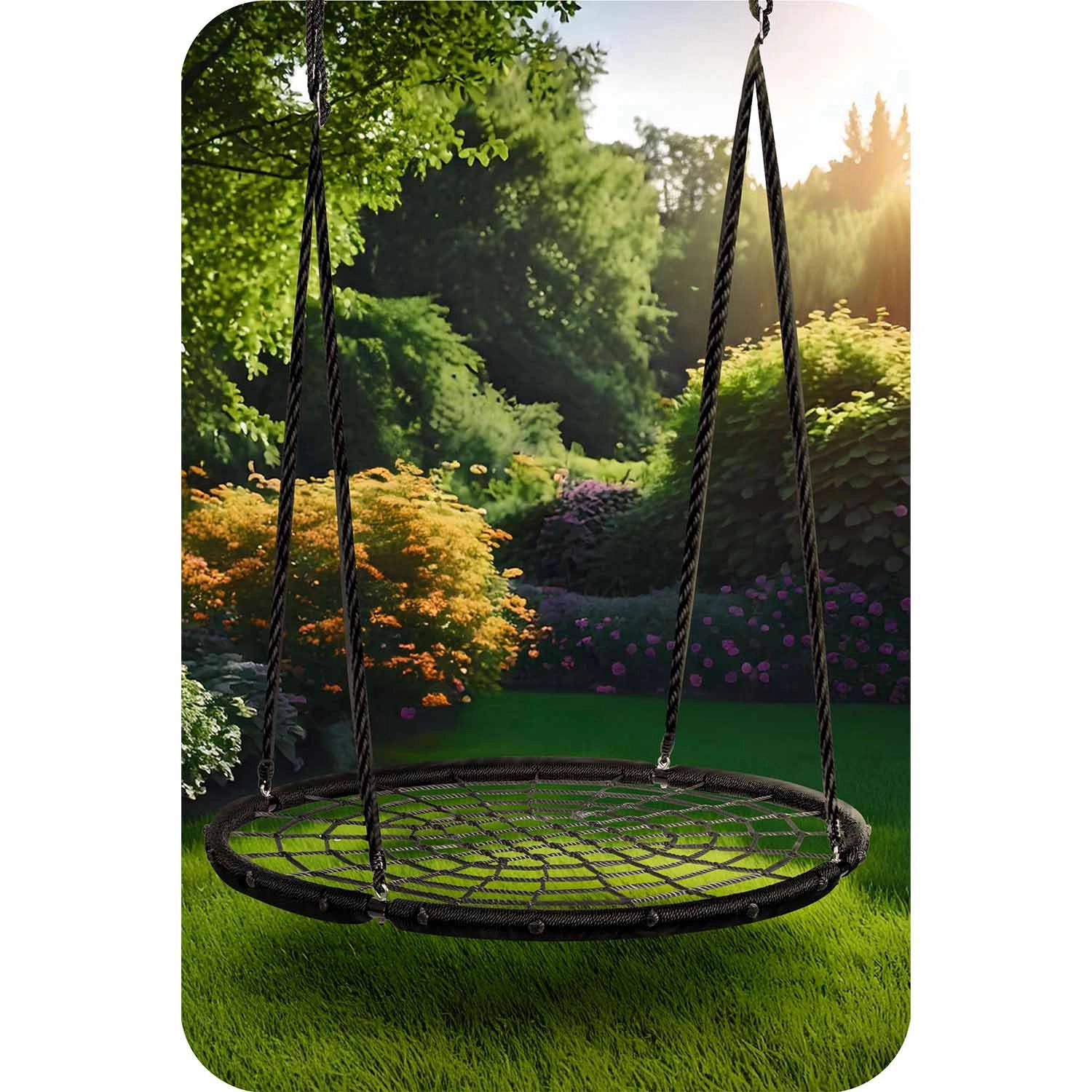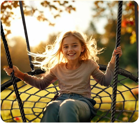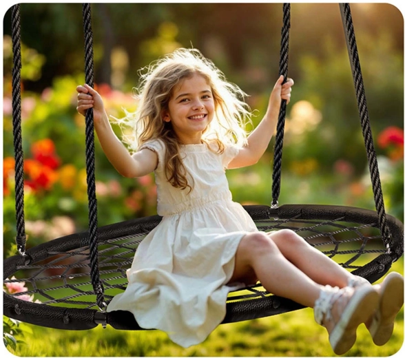 Lo spessore e la qualità delle corde in PE assicurano resistenza all’abrasione, all’umidità e al sole. L’altalena è facile da pulire ed è pronta per l’uso quotidiano all’aperto.