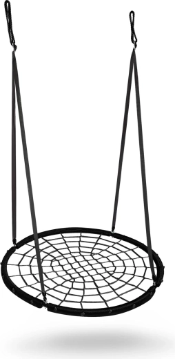 Le corde di sospensione a altezza regolabile (circa 90–160 cm) consentono di adattare l’altalena all’età e alla statura del bambino. L’ampia seduta dal diametro di 120 cm ospita comodamente più bambini contemporaneamente e la portata fino a 150 kg offre un dondolio sicuro anche per gli adulti. Soluzione ideale per giardino, cortile o pergolato.