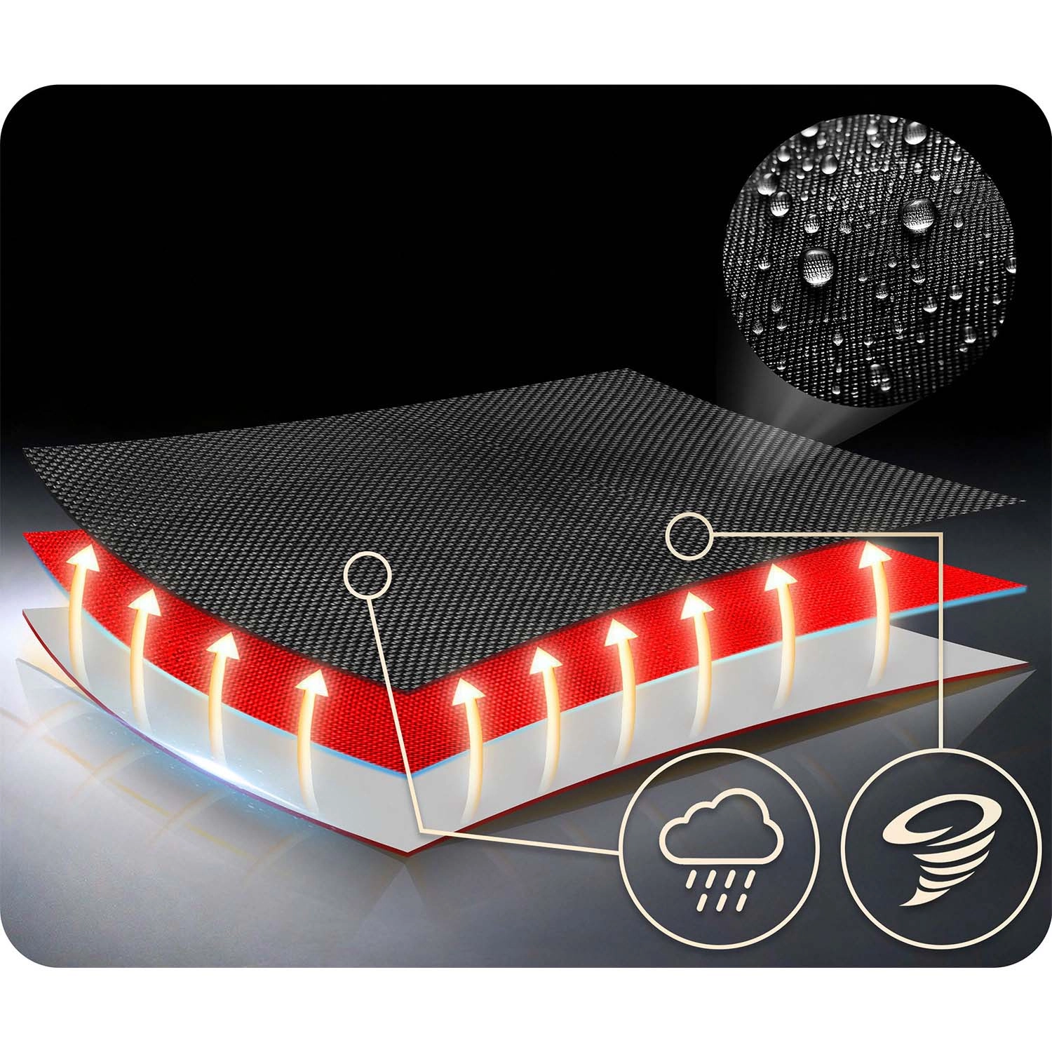 Il resistente tessuto Oxford 600D sopporta pioggia e uso quotidiano. È sufficiente passare un panno sulla superficie e l’altalena è di nuovo pronta al divertimento.