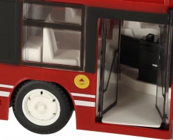 Realistico autobus RC con frequenza 2,4 GHz che offre controllo completo, porte che si aprono automaticamente a distanza e fari LED anteriori. Grazie al radiocomando ergonomico gestisce marcia avanti/indietro, sterzata con indicatori di direzione lampeggianti, clacson e suono del motore. Inclusi batteria ricaricabile e caricatore per un uso economico.