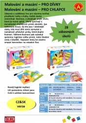 Divertente gioco educativo per bambini in età prescolare con 28 attività su 14 schede laminate e un pennarello con gommino cancellabile. Durante il gioco i bambini allenano la motricità fine, il pensiero logico e la corretta impugnatura della penna. La facilità di scrittura e cancellazione favorisce creatività, concentrazione e la preparazione alla scrittura a scuola.