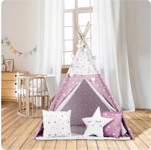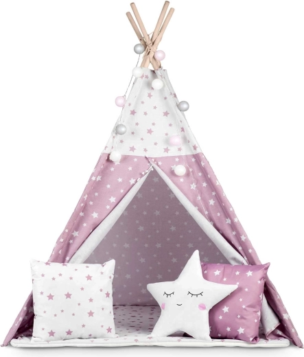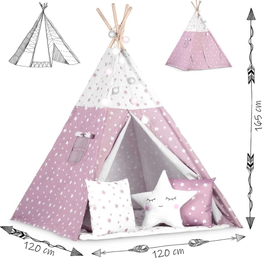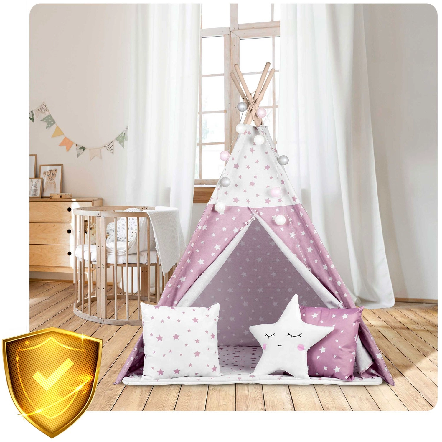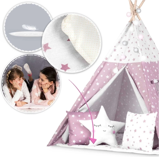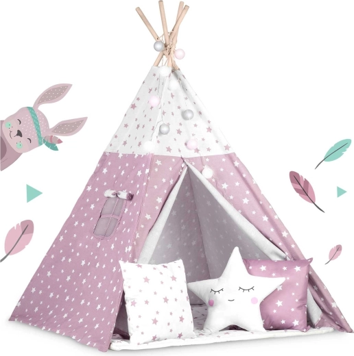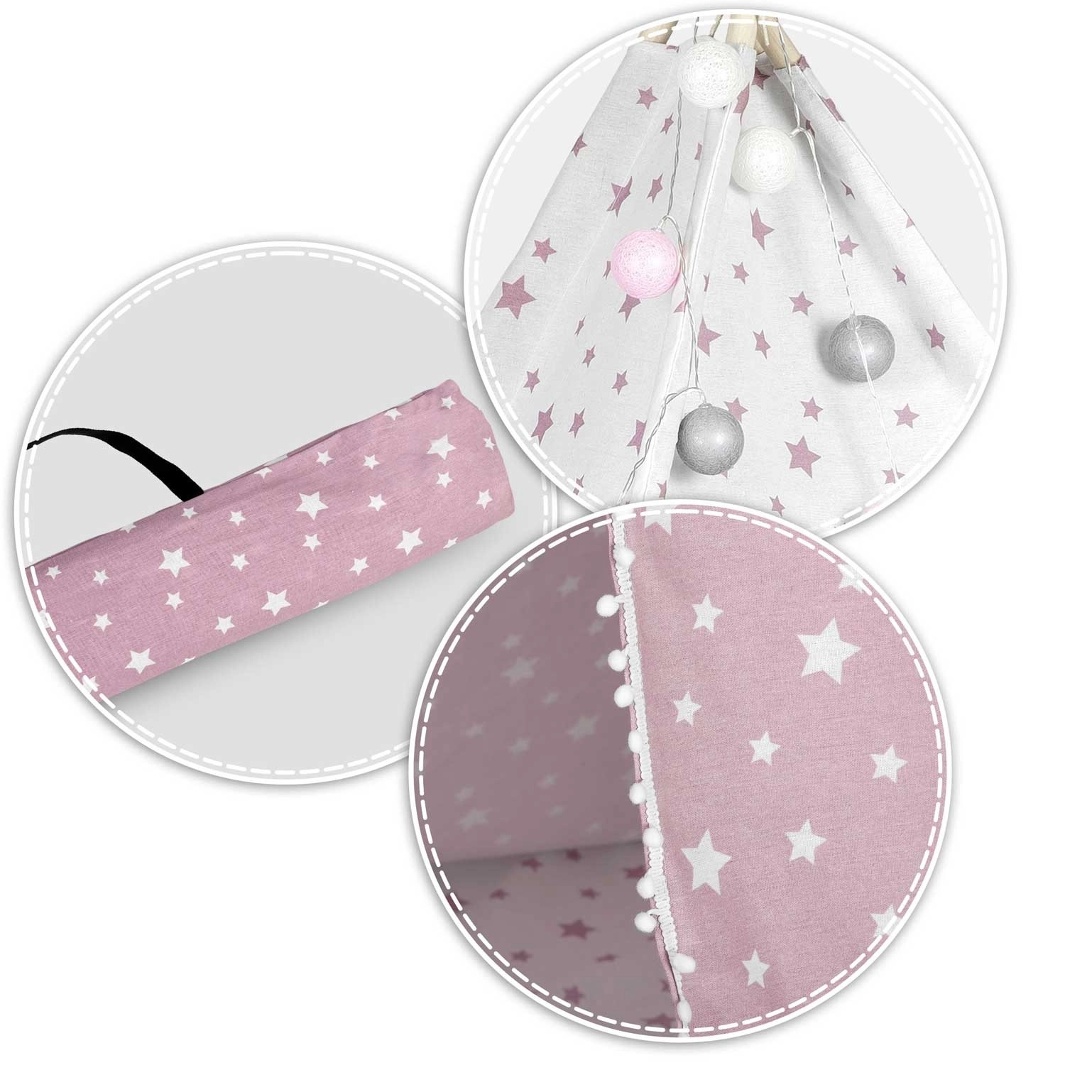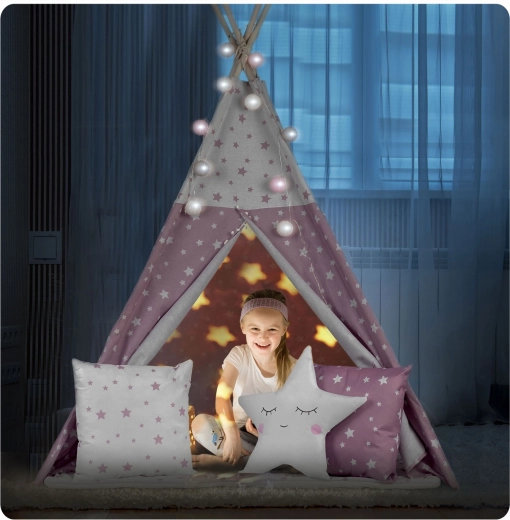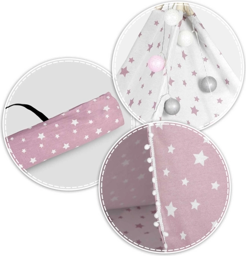 Teepee per bambini con lucine NUKIDO – rosa con stelline