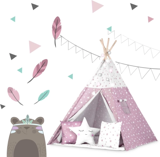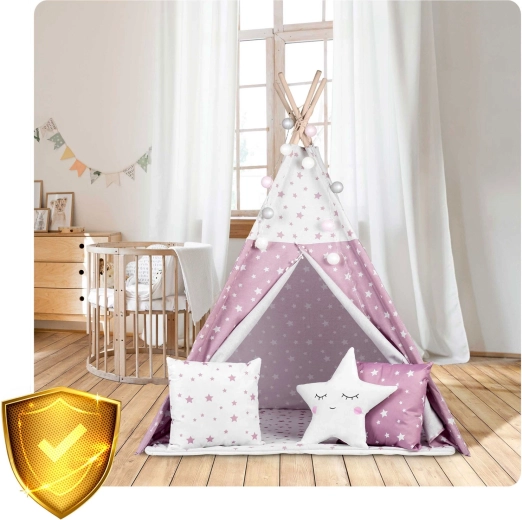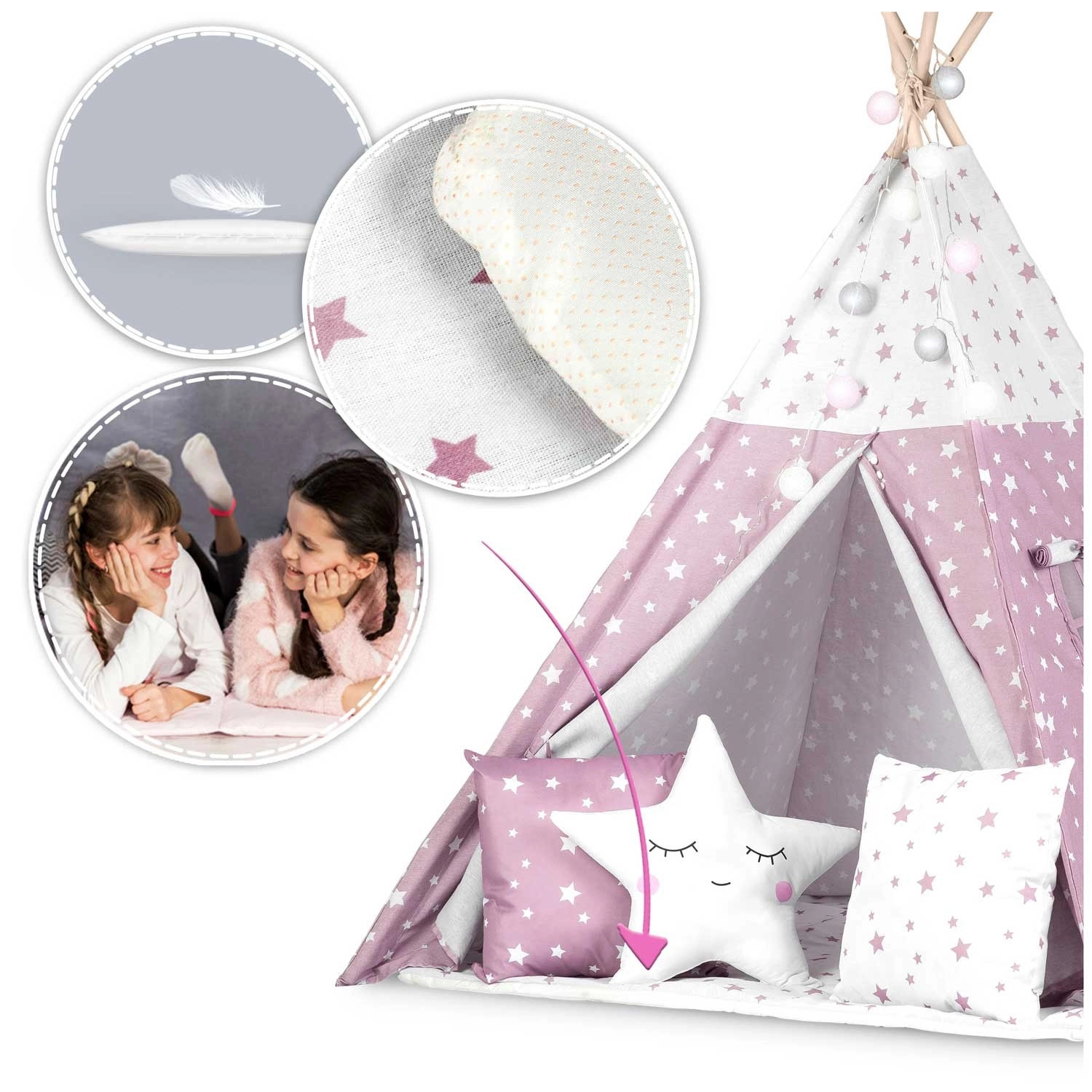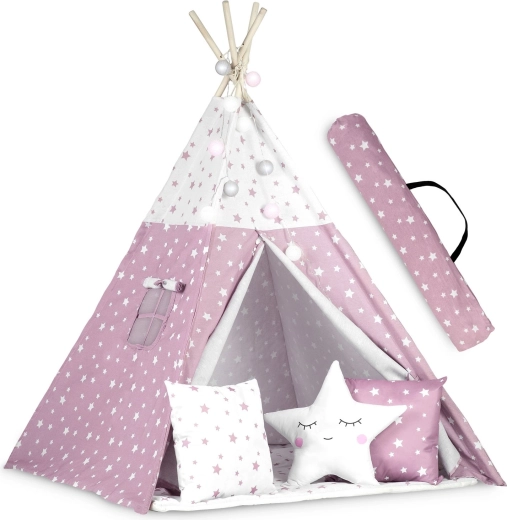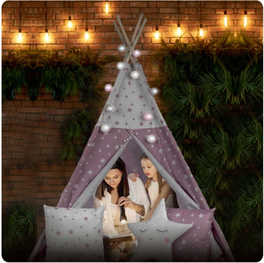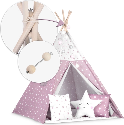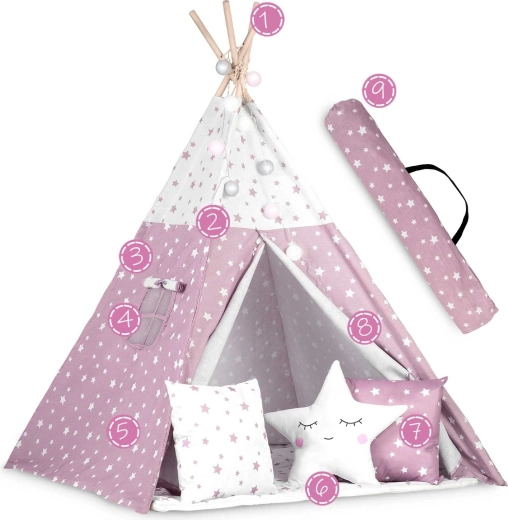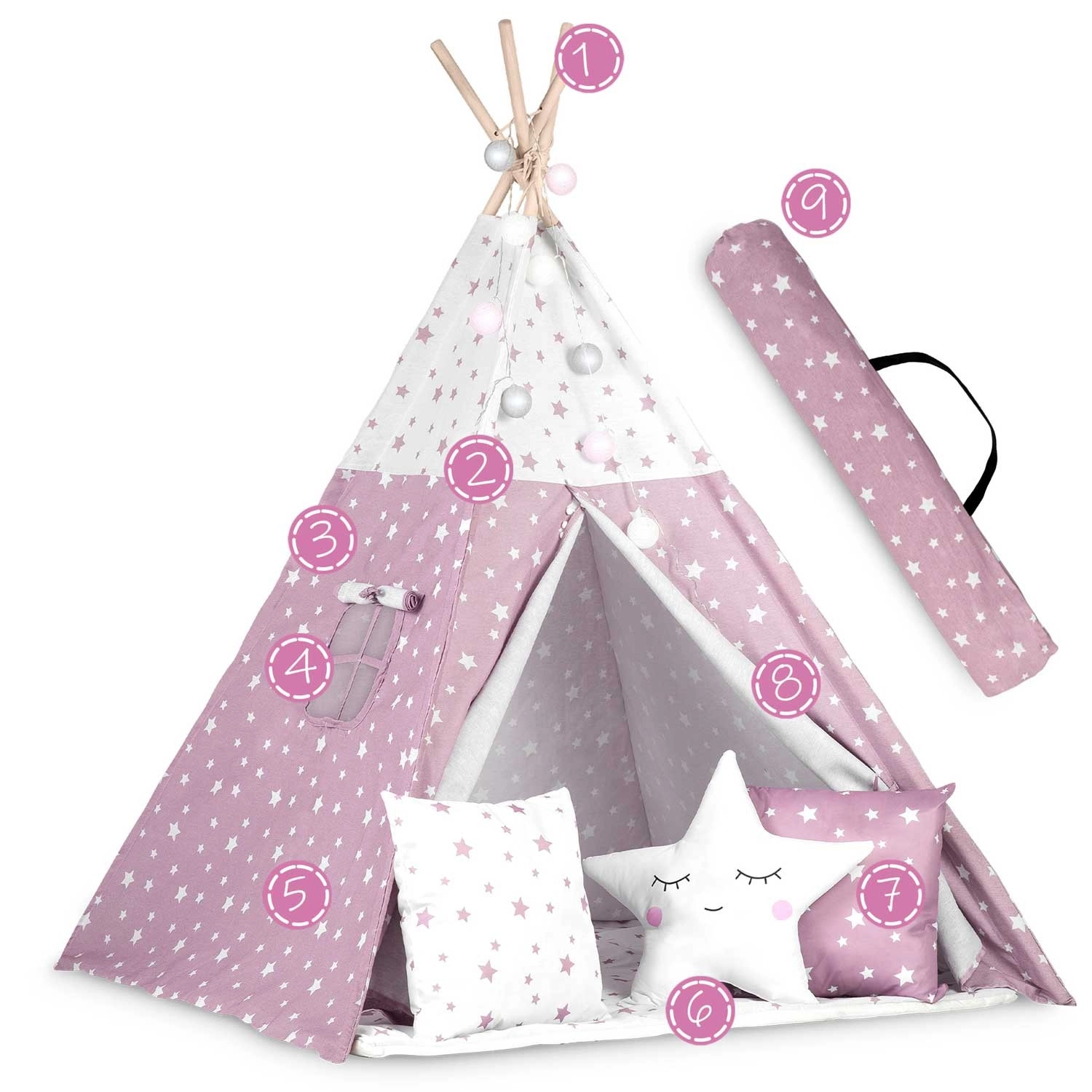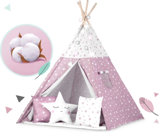 Teepee per bambini con lucine NUKIDO – rosa con stelline
