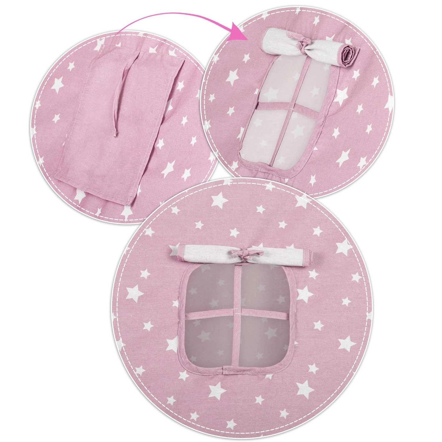Il teepee per bambini NUKIDO in rosa con stelline è un elemento bello e funzionale per la cameretta. Cucito in cotone premium 100% con grammatura elevata di 175 g/m² per un tocco piacevole, traspirabilità e lunga durata. La struttura stabile in abete/pino con quattro pali è completata da uno stabilizzatore per un utilizzo più sicuro. L’ingresso apribile con laccetti e la finestrina con tendina aggiungono un tocco giocoso e migliorano la circolazione dell’aria.