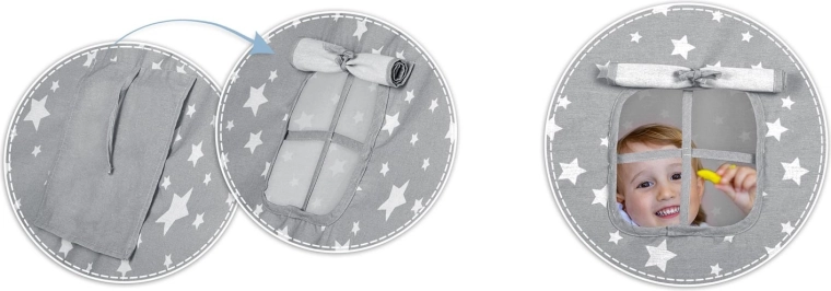- Dettagli intelligenti – finestrella con tendina, ingresso con laccetti, fondo cucito antiscivolo.