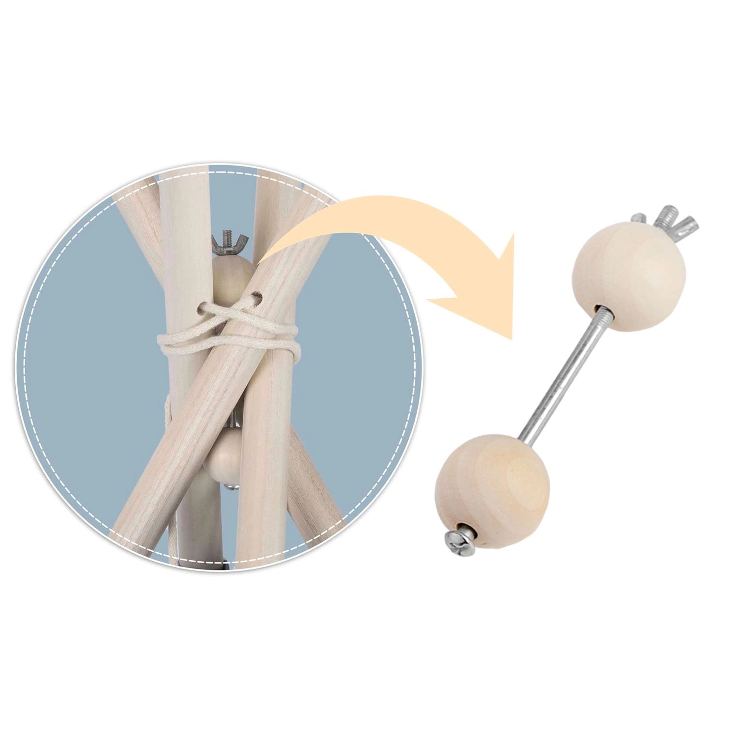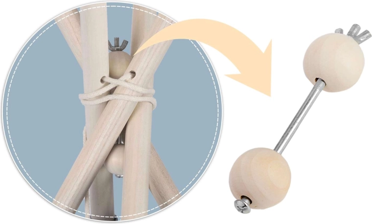 Quattro pali in pino e lo stabilizzatore incluso mantengono la forma del teepee, aumentano la sicurezza e garantiscono solidità durante il gioco.