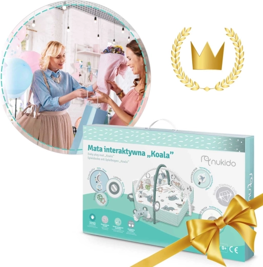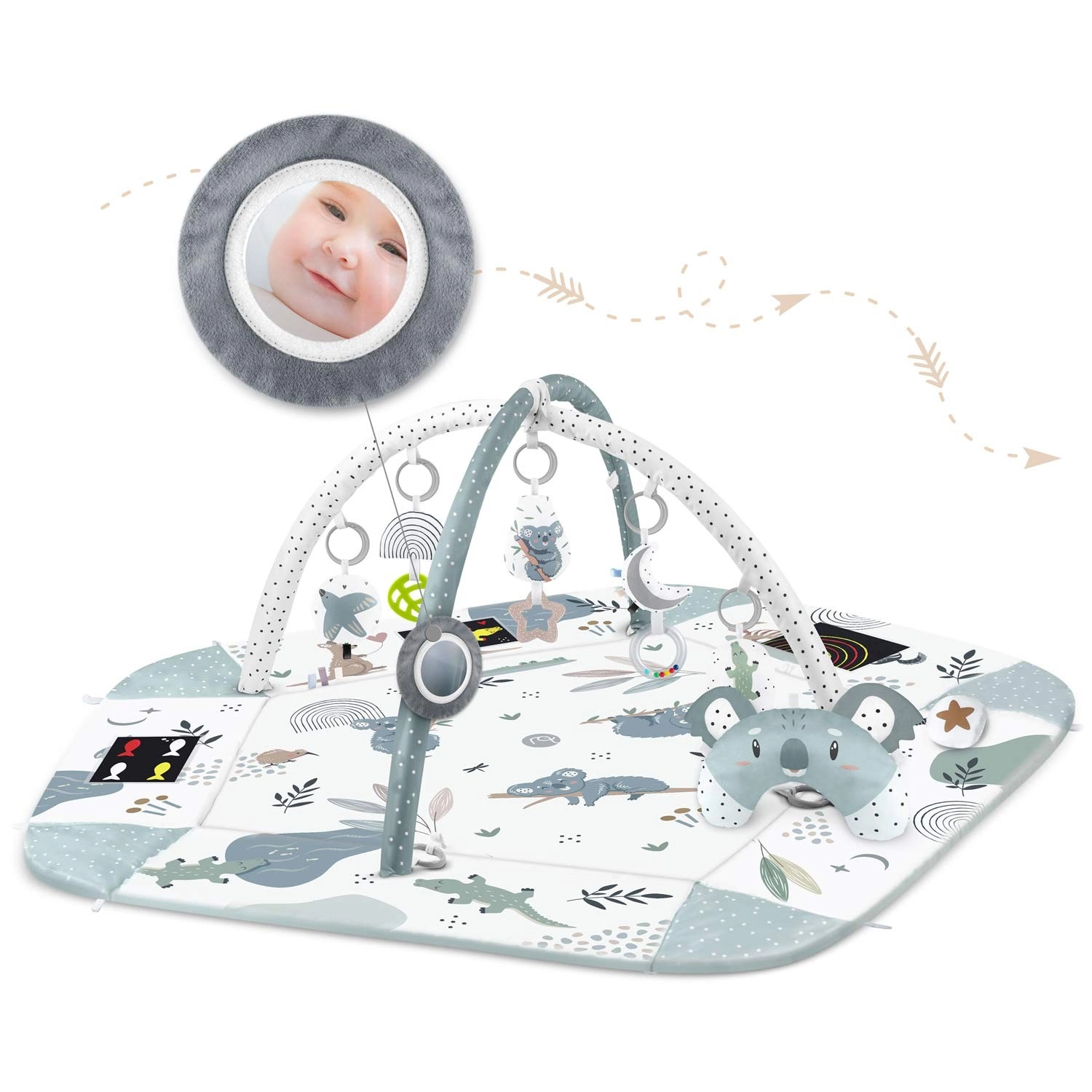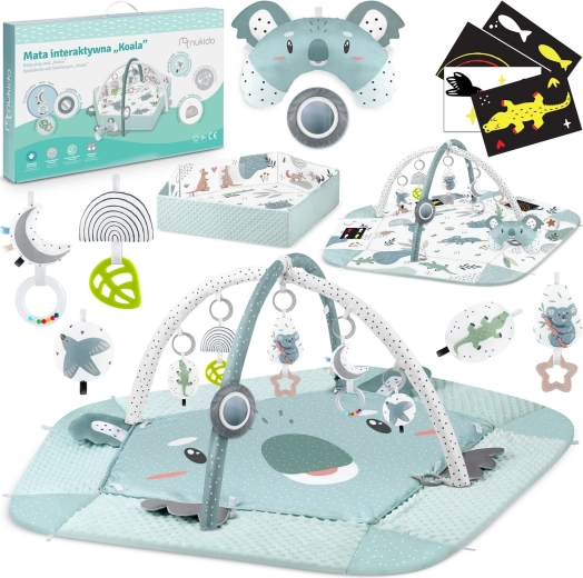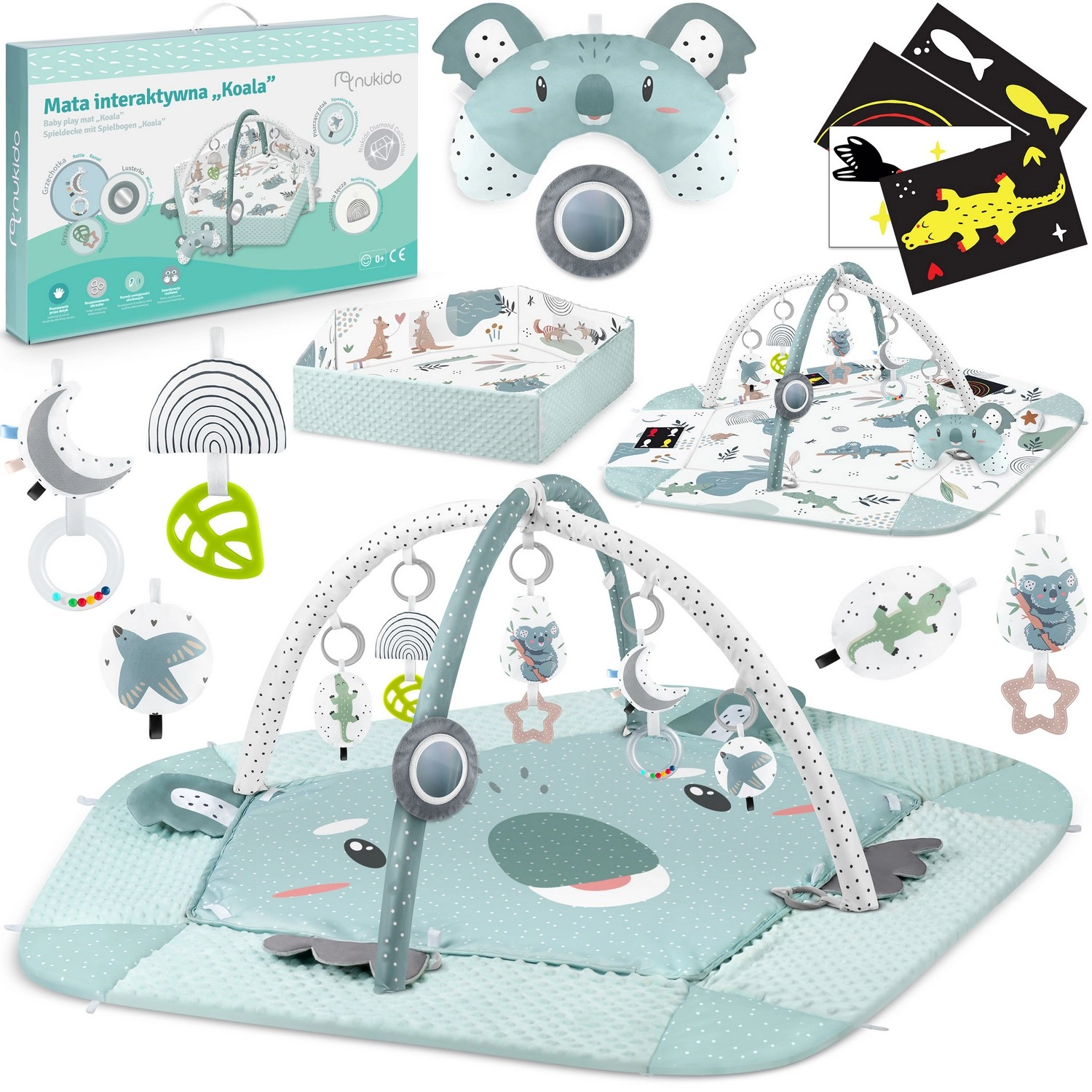 Scopri il tappeto gioco per neonati con motivo a koala, che unisce una zona di gioco sicura al supporto dello sviluppo motorio fin dai primi giorni. Il tappeto è double-face, ha sponde rialzabili, chiusura rapida e fino a 7 giochi multifunzionali inclusi il cuscinetto per il tummy time e uno speciale tappetino “CU‑CU” peekaboo. Il morbido materiale minky è soffice e facile da pulire. Conforme ai rigorosi standard di sicurezza europei CE, EN71‑1/2/3.