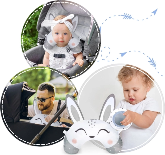 La lavorazione premium e i materiali resistenti e sicuri assicurano lunga durata e manutenzione semplice. Il cuscinetto è leggero, compatto e multifunzionale – ideale per passeggino, seggiolino auto o area gioco in casa. Rispetta le rigorose norme europee ed è dotato di pratici anelli per agganciare altri giochi preferiti.