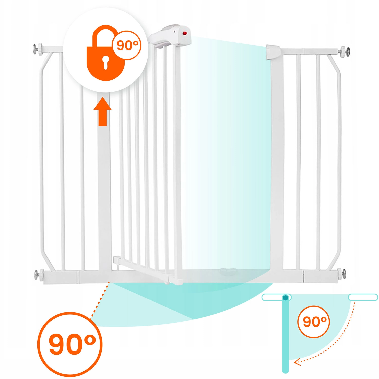 Il sistema di azionamento è pensato per gli adulti: il doppio sistema di sicurezza richiede la pressione del pulsante superiore e poi di quello inferiore, difficile per i bambini ma intuitivo per voi. Il cancello si apre con una sola mano, la chiusura è fluida e silenziosa. Grazie all’apertura bidirezionale e alla possibilità di blocco a 90°, il passaggio è sempre comodo.